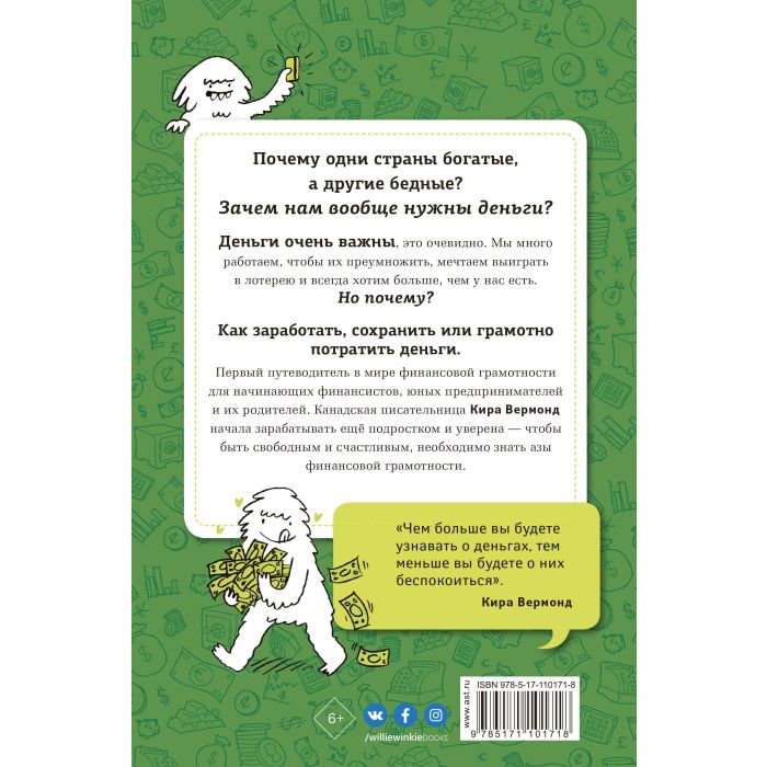 Канадская писательница Кира Вермонд начала зарабатывать ещё подростком. Она обладатель премий Norma Fleck в области научно-популярной литературы для детей и подростков. Кира полностью уверена, что чем больше мы узнаем о деньгах, тем меньше будем о них беспокоиться.