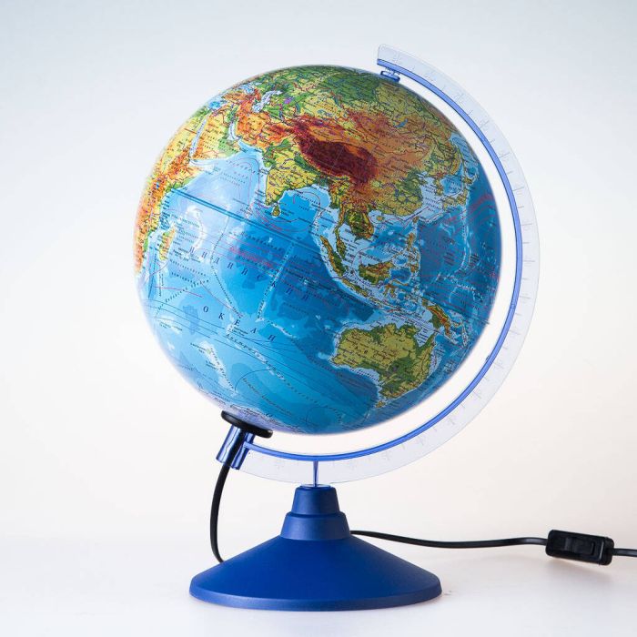 Глобус физико-политический d=250мм, с подсветкой, круглая голубая подставка
