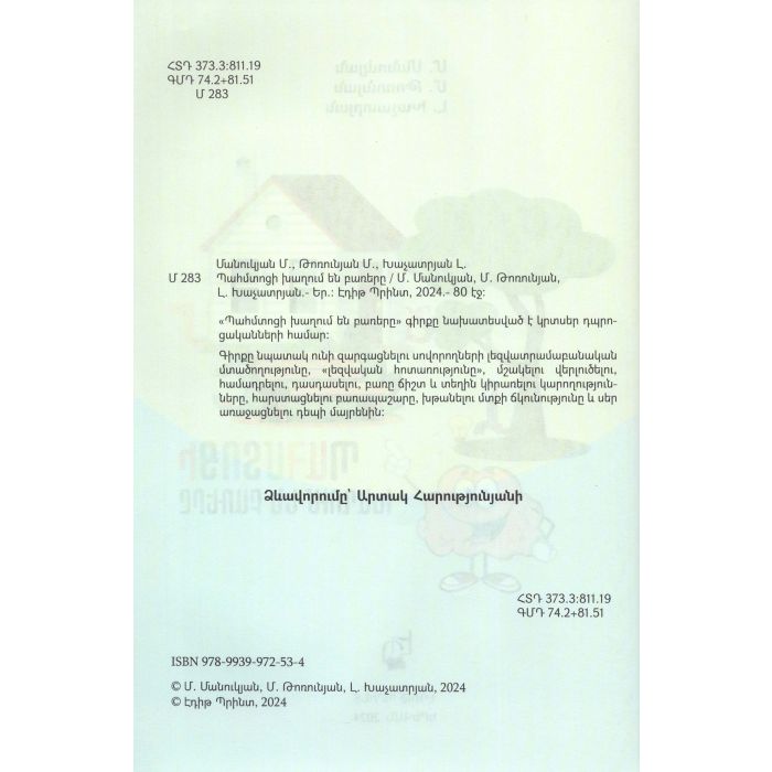 «Պահմտոցի խաղում են բառերը» գիրքը նախատեսված է կրտսեր դպրոցականների համար: