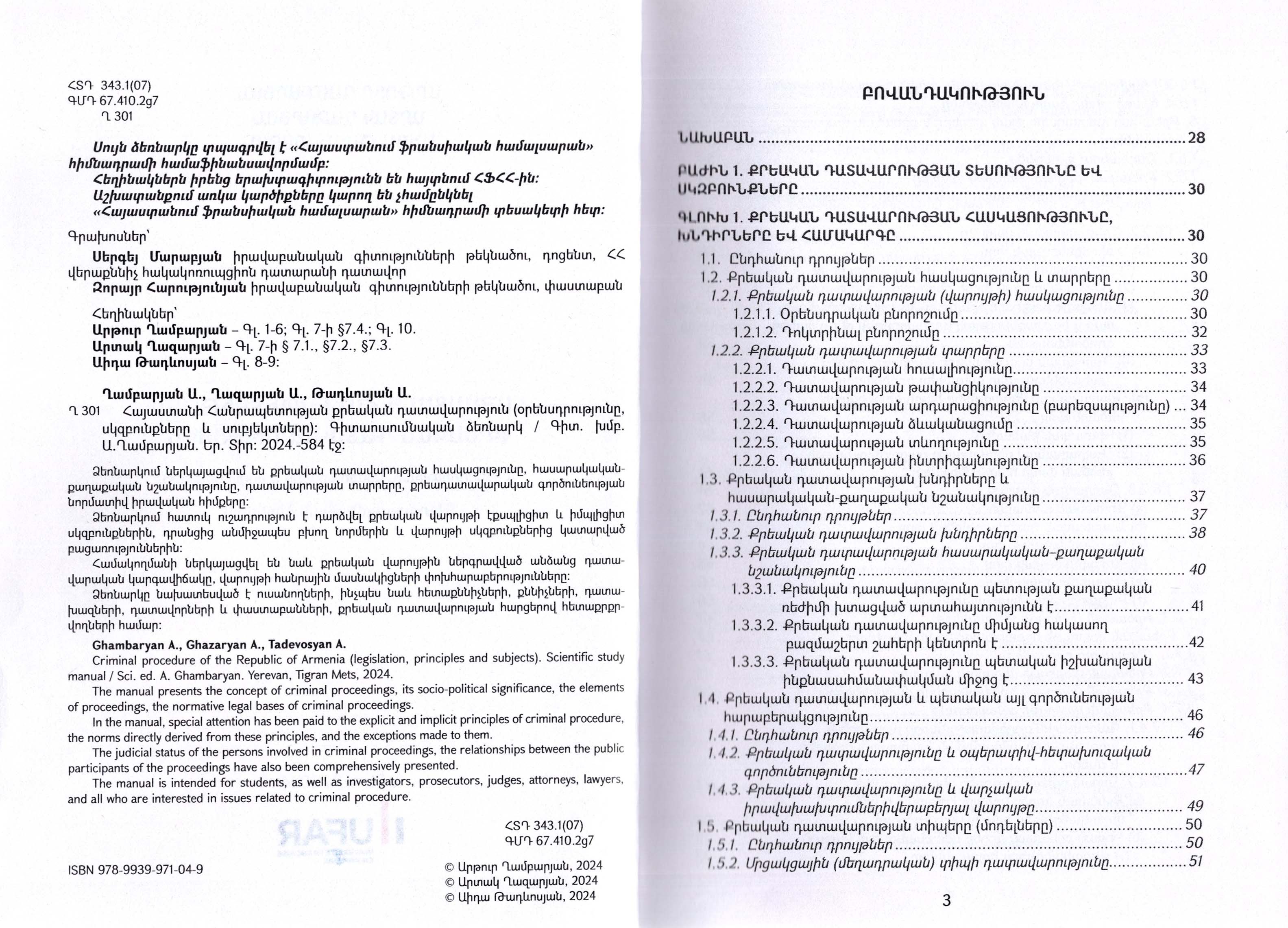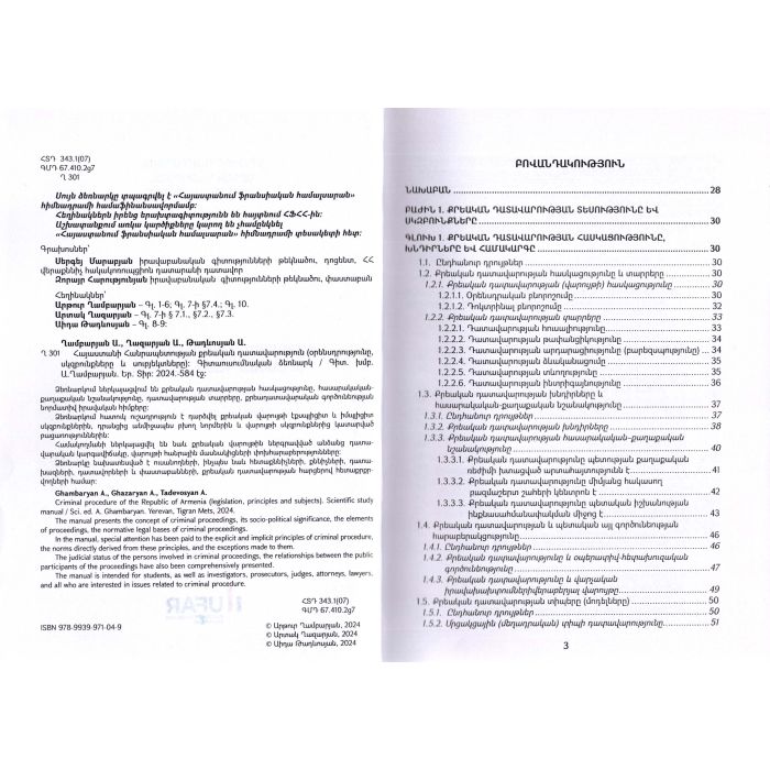 Համակողմանի ներկայացվել են նաև քրեական վարույթին ներգրավված անձանց դատավարական կարգավիճակը, վարույթի հանրային մասնակիցների փոխհարաբերությունները: