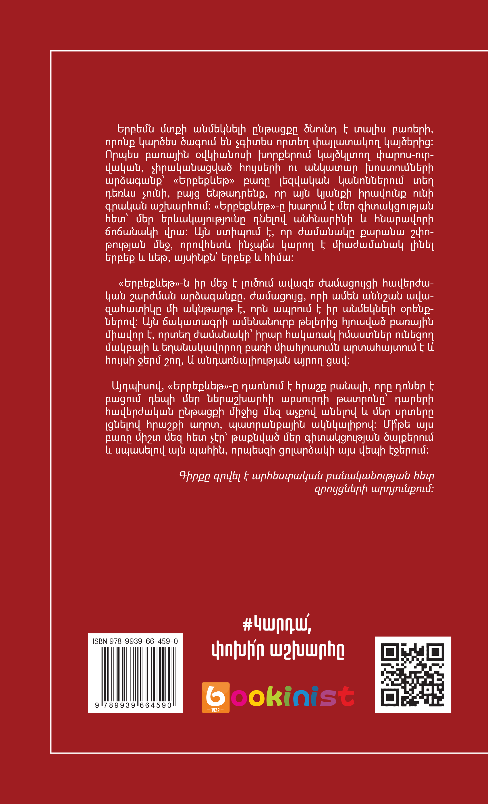 «Երբեքևեթ»-ն իր մեջ է լուծում ավազե ժամացույցի հավերժական շարժման արձագանքը. ժամացույց, որի ամեն աննշան ավազահատիկը մի ակնթարթ է, որն ապրում է իր անմեկնելի օրենքներով: Այն ճակատագրի ամենանուրբ թելերից հյուսված բառային միավոր է, որտեղ ժամանակի՝ իրար հակառակ իմաստներ ունեցող մակբայի և եղանակավորող բառի միահյուսումն արտահայտում է և՛ հույսի ջերմ շող, և՛ անդառնալիության այրող ցավ: