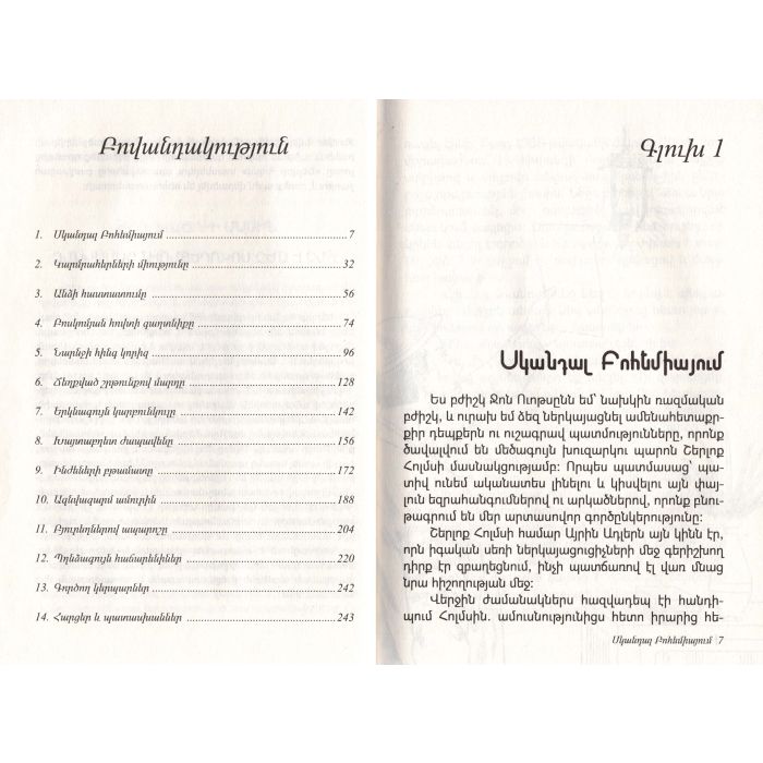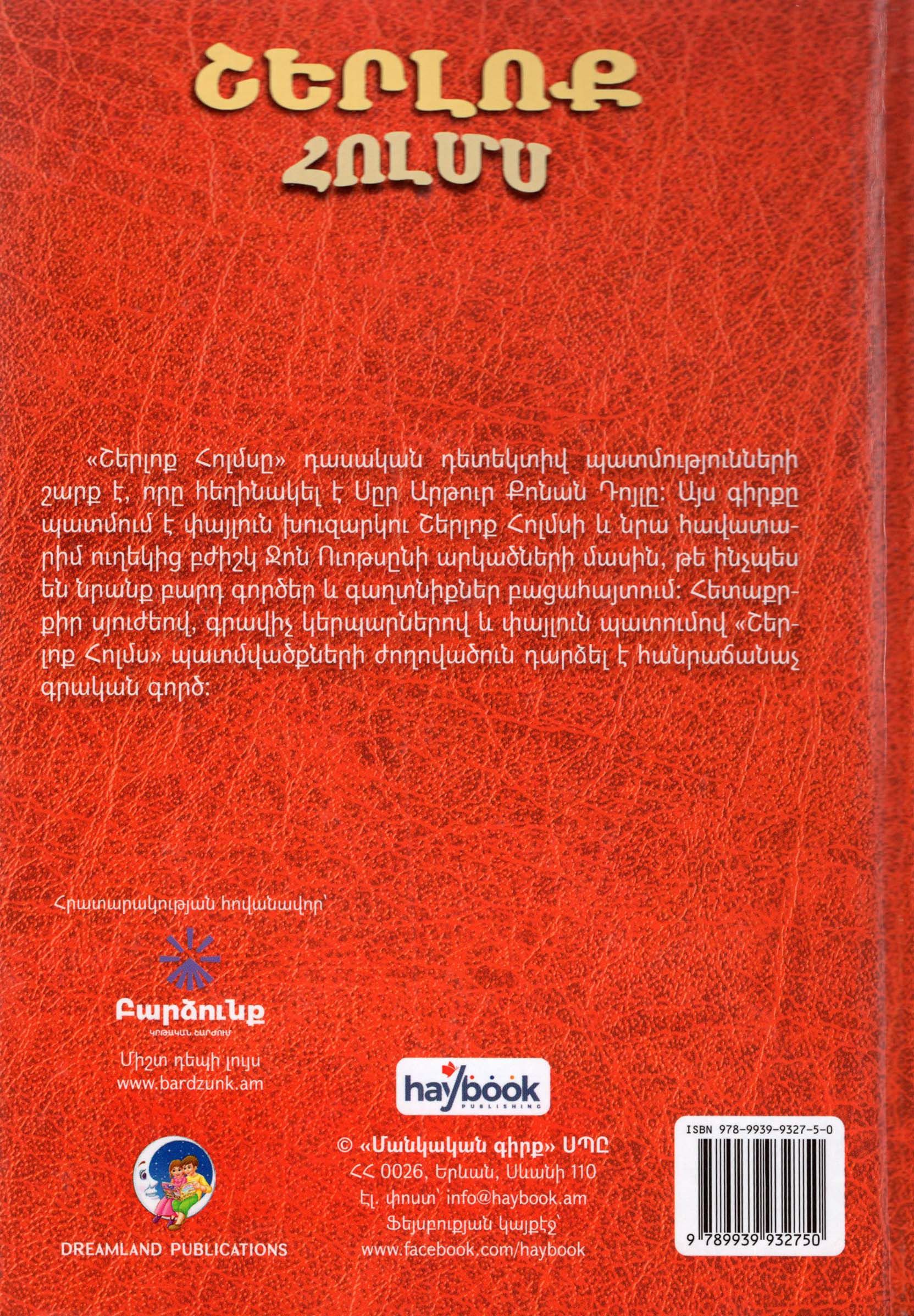 «Շերլոք Հոլմսը» դասական դետեկտիվ պատմությունների շարք է, որը հեղինակել է Սըր Արթուր Քոնան Դոյլը: Այս գիրքը պատմում է փայլուն խուզարկու Շերլոք Հոլմսի և նրա հավատարիմ ուղեկից բժիշկ Ջոն Ուոթսընի արկածների մասին, թե ինչպես են նրանք բարդ գործեր և գաղտնիքներ բացահայտում: Հետաքրքիր սյուժեով, գրավիչ կերպարներով և փայլուն պատումով «Շերլոք Հոլմս» պատմվածքների ժողովածուն դարձել է հանրաճանաչ գրական գործ:
