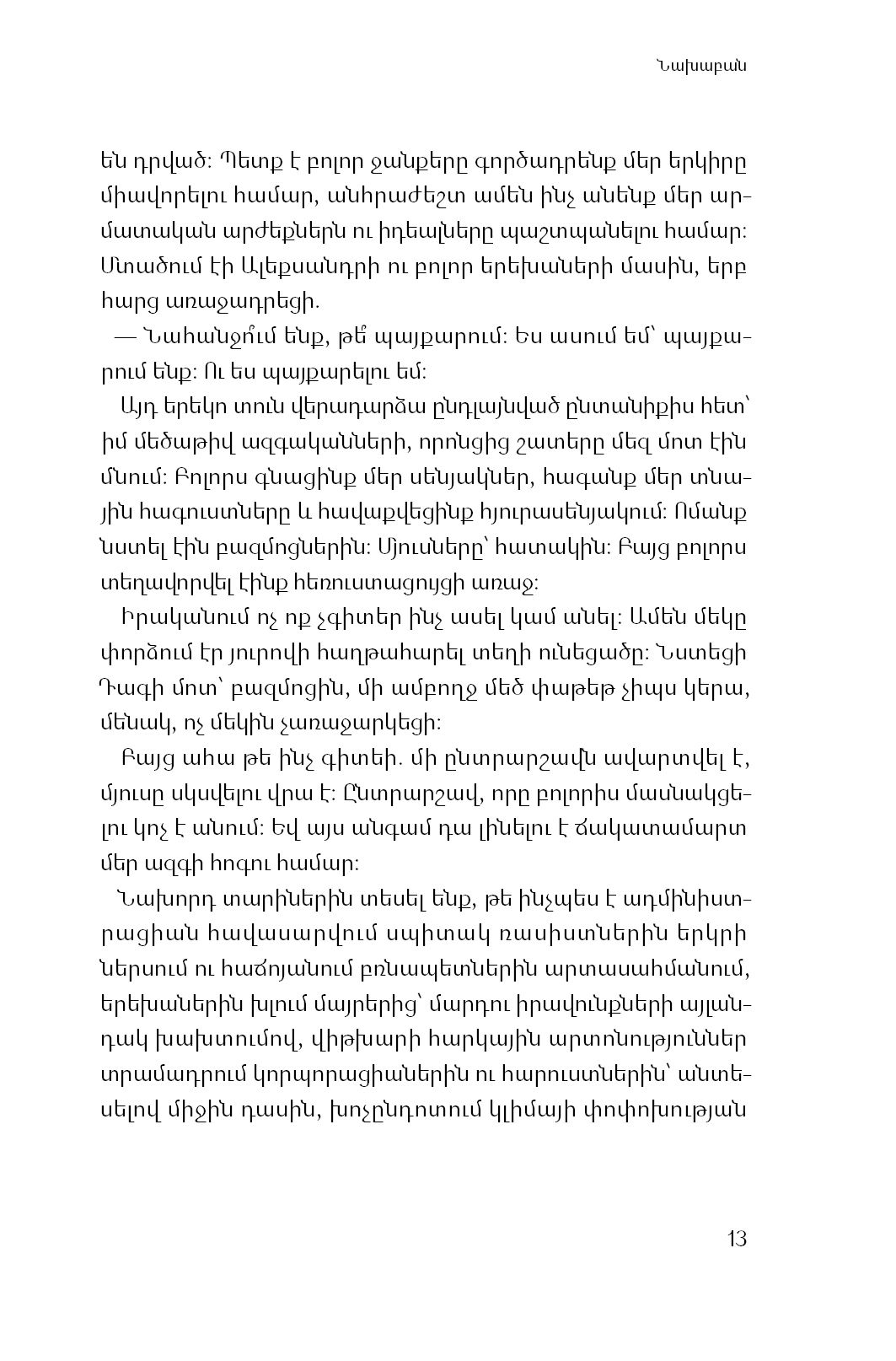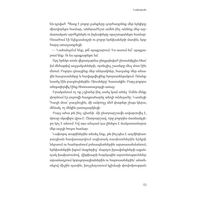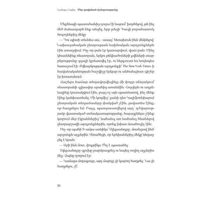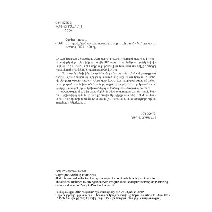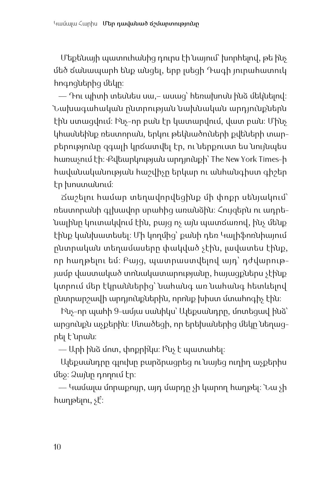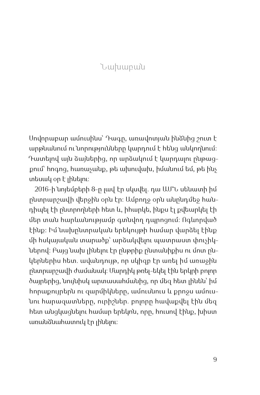 Աշխարհի ազդեցիկ կանանցից մեկը պարզ ու ոգեշնչող կերպով պատմում է իր արտասովոր կյանքի և կարիերայի մասին։ ԱՄՆ պատմության մեջ առաջին կին փոխնախագահը 10 տարվա ընթացքում կարիերայի անհավանական թռիչք է ունեցել՝ դատախազից հասնելով իշխանության Օլիմպոսին: Այդ ճանապարհին Հարիսը երբեք չի վախեցել կոտրել կարծրատիպեր և չի ընկրկել դժվարությունների առաջ: Այս կնոջ գործունեության շնորհիվ ԱՄՆ-ում պակասել են հանցագործությունները: Տնտեսական ճգնաժամից հետո Հարիսը հազարավոր ընտանիքների օգնել է պահպանել իրենց տները: Նա պայքարել է կորպորացիաների և բանկերի չարաշահումների դեմ և նրանցից գանձել բազմամիլիարդ տուգանքներ:ԱՄՆ առաջին կին փոխնախագահ Կամալա Հարիսն անկեղծանում է այս գրքում՝ գրելով աղքատ ու վտանգավոր թաղամասում անցկացրած մանկության տարիների, ներգաղթյալների դուստր լինելու պատճառով վաղ տարիքում ստացած անհավասարության դասերի ու այն մասին, թե որքան դժվար էր 50 տարեկանում նորից կյանքը դասավորել երկու երեխա ունեցող, ամուսնալուծված տղամարդու հետ:Կամալան պատմում է իր երազանքների, կենսունակության, արդարության հանդեպ կրքի ու իր զարմանալի կյանքի մասին: Այս գիրքը նաև դժվարին ժամանակներում խնդիրների լուծման, ճգնաժամային կառավարման և առաջնորդության յուրահատուկ ձեռնարկ է:
