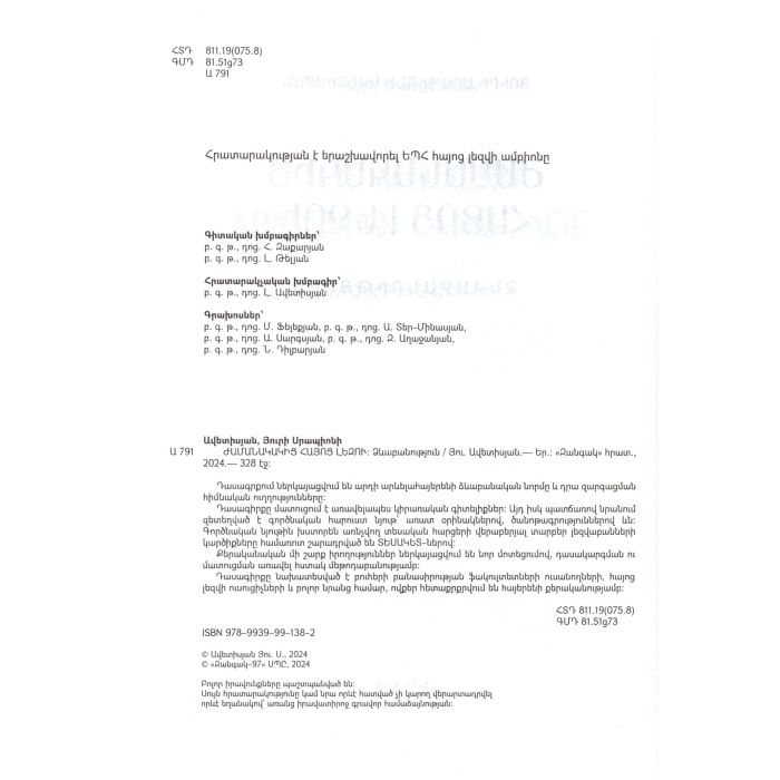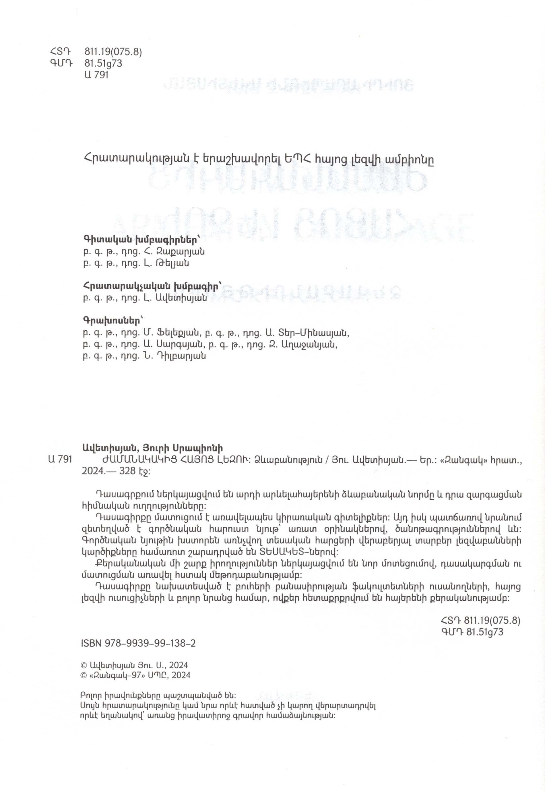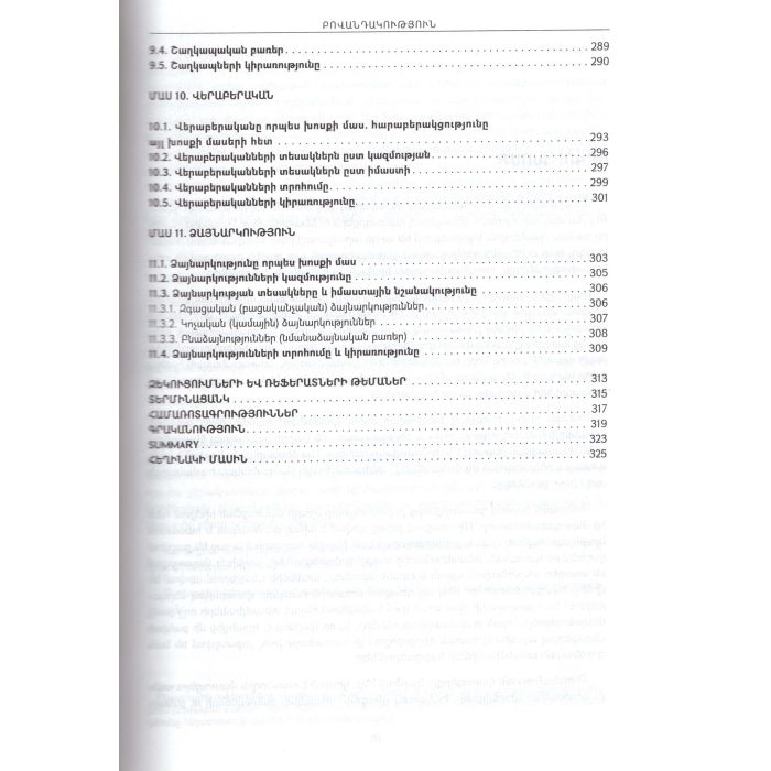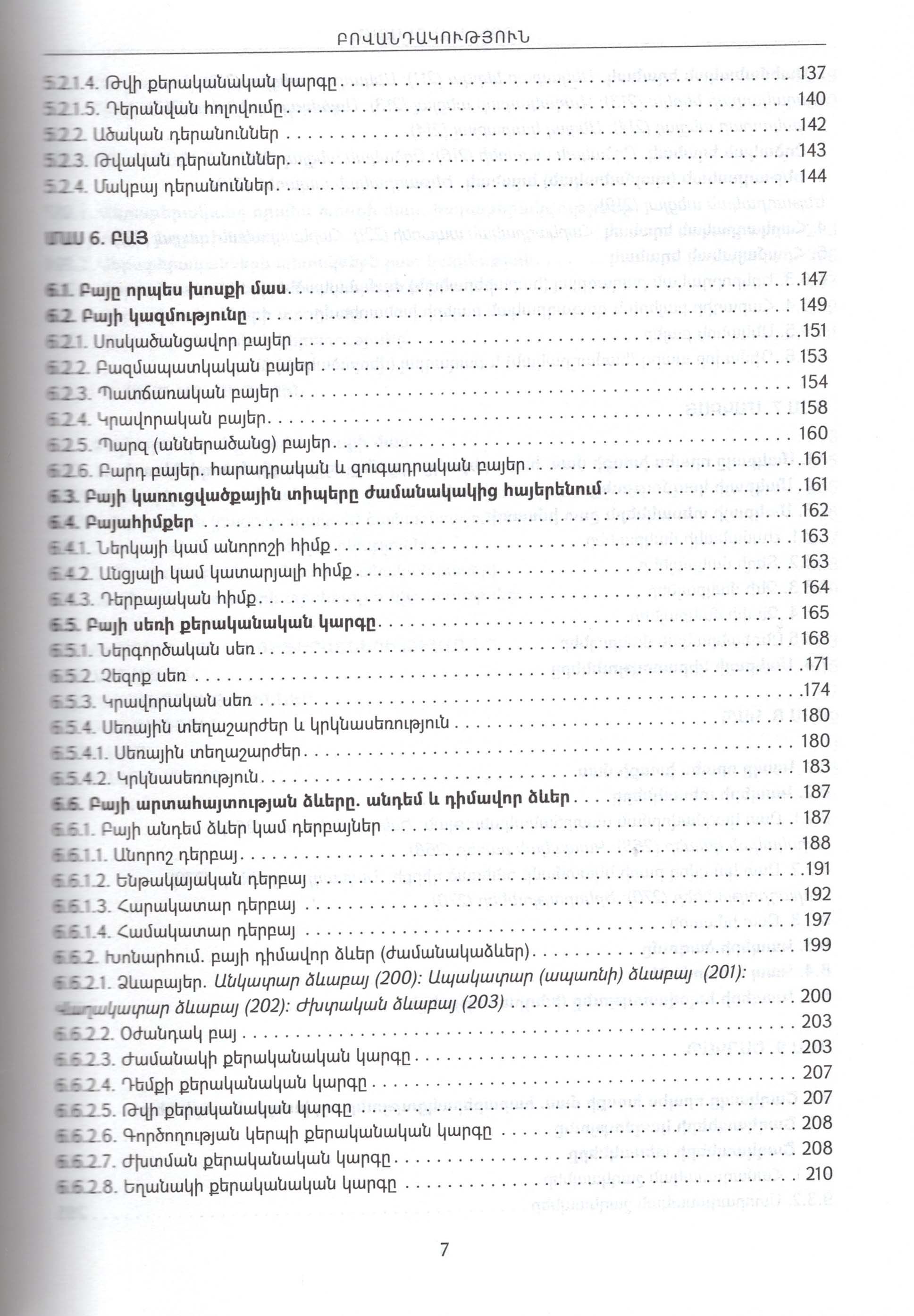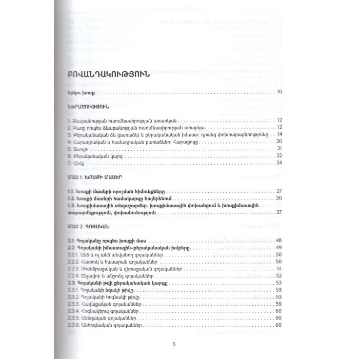 Դասագրքում ներկայացվում են արդի արևելահայերենի ձևաբանական նորմը և դրա զարգացման հիմնական ուղղությունները: Դասագիրքը մատուցում է առավելապես կիրառական գիտելիքներ: Այդ իսկ պատճառով նրանում զետեղված է գործնական հարուստ նյութ՝ առատ օրինակներով, ծանոթագրություններով են: Գործնական նյութին խստորեն առնչվող տեսական հարցերի վերաբերյալ տարբեր լեզվաբանների կարծիքները համառոտ շարադրված են ՏԵՍԱԿԵՏ-ներով: Քերականական մի շարք իրողություններ ներկայացվում են նոր մոտեցումով, դասակարգման ու մատուցման առավել հստակ մեթոդաբանությամբ: Դասագիրքը նախատեսված է բուհերի բանասիրության ֆակուլտետների ուսանողների, հայոց լեզվի ուսուցիչների և բոլոր նրանց համար, ովքեր հետաքրքրվում են հայերենի քերականությամբ: