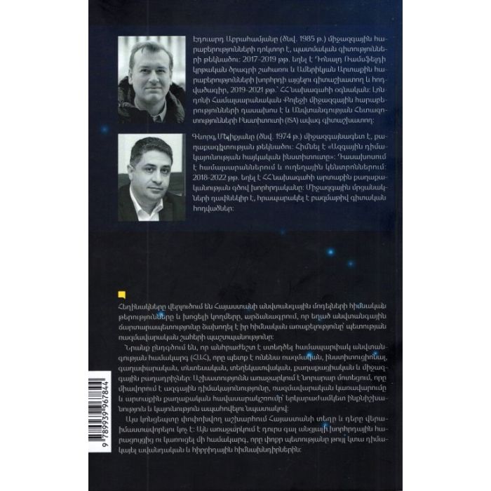 Հեղինակները վերլուծում են Հայաստանի անվտանգային մոդելների հիմնական թերությունները և խոցելի կողմերը, արձանագրում, որ եղած անվտանգային ճարտարապետությունը ձախողել է իր հիմնական առաքելությունը՝ պետության ռազմավարական շահերի պաշտպանությունը։Նրանք ընդգծում են, որ անհրաժեշտ է ստեղծել համապարփակ անվտանգության համակարգ (ՀԱՀ), որը պետք է ունենա ռազմական, ինստիտուցիոնալ, գաղափարական, տնտեսական, տեղեկատվական, քաղաքացիական և միջազգային բաղադրիչներ։ Ուժի տեսական հայեցակարգի և փոքր պետությունների փորձի քննադատական հետազոտության հիման վրա աշխատությունն առաջարկում է նորարար մոտեցում։ Այն միավորում է ազգային դիմակայունությունը, ռազմավարական կառավարումը և արտաքին քաղաքական հավասարակշռումը՝ երկարաժամկետ ինքնիշխանություն և կայունություն ապահովելու նպատակով։ ՀԱՀ կոնցեպտը փոփոխվող աշխարհում Հայաստանի տեղը և դերը վերաիմաստավորելու կոչ է։ Այն առաջարկում է դուրս գալ անցյալի խորհրդային հարացույցից ու կառուցել մի համակարգ, որը փոքր պետությանը թույլ կտա դիմակայել ավանդական և հիբրիդային հիմնախնդիրներին։Անվտանգային նոր մտածողություն ներշնչող այս գիրքն աղբյուր է որոշում կայացնողների, հետազոտողների և բոլոր նրանց համար, ովքեր ձգտում են անվտանգային նոր միջավայր հիմնել։Այս գրքի հրատարակության իրավունքները պատկանում են «Արար» հիմնադրամին։ Գիրքը հրատարակվել է Newmag & Friends ծրագրով։