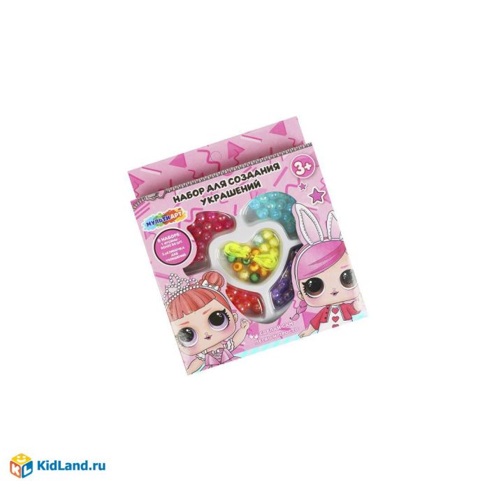 Набор бисера и бусин сердечко, куколки модницы МУЛЬТИ АРТ
