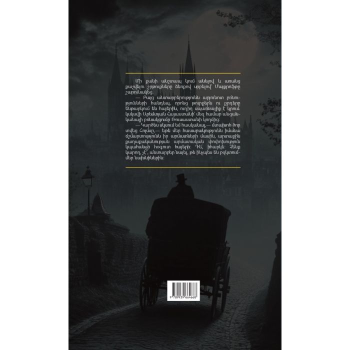 Գիրքն աջաջին իսկ տողերից գրավում է ընթերցողին իր ինտրիգներով, փաստերի՝ առերևույթ իրար չառանչվող հետաքրքիր համադրություններով ու Շերլոք Հոլմսի՝ անհասկանալի խնդիրներին տրված պարզ լուծումներով, և որ ամենահետաքրքիրն է՝ անցյալ-ներկա-ապագա, Արմորիկա-Արմենիա, բրիտանացի-հայ տարված զուգահեռներով...