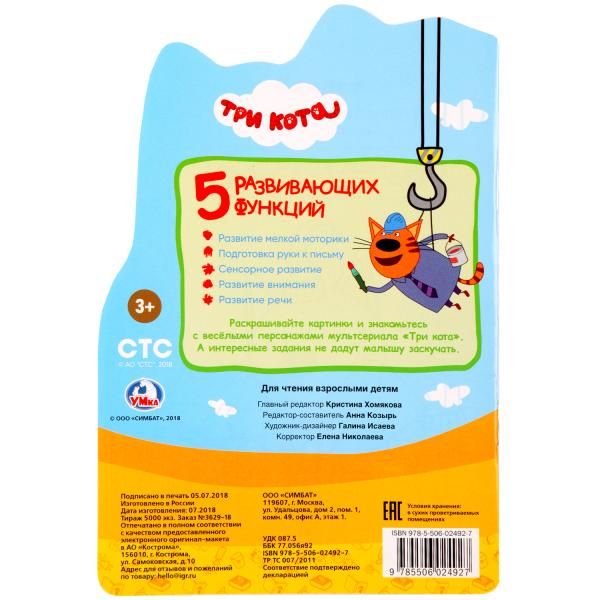 Три кота. Раскраска С Развивающими Заданиями