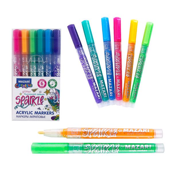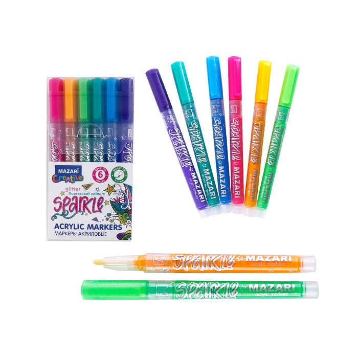 Набор маркеров-красок Mazari с блёстками Sparkle, 6 цв.