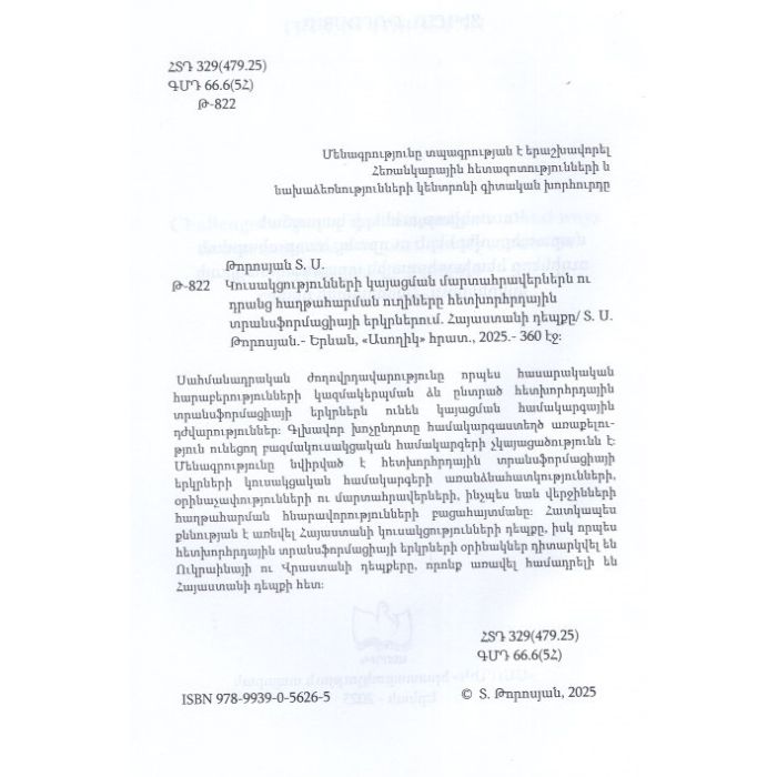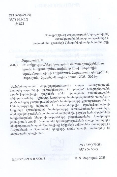 Կուսակցությունների կայացման մարտահրավերներն ու դրանց հաղթահարման ուղիները հետխորհրդային տրանսֆորմ.