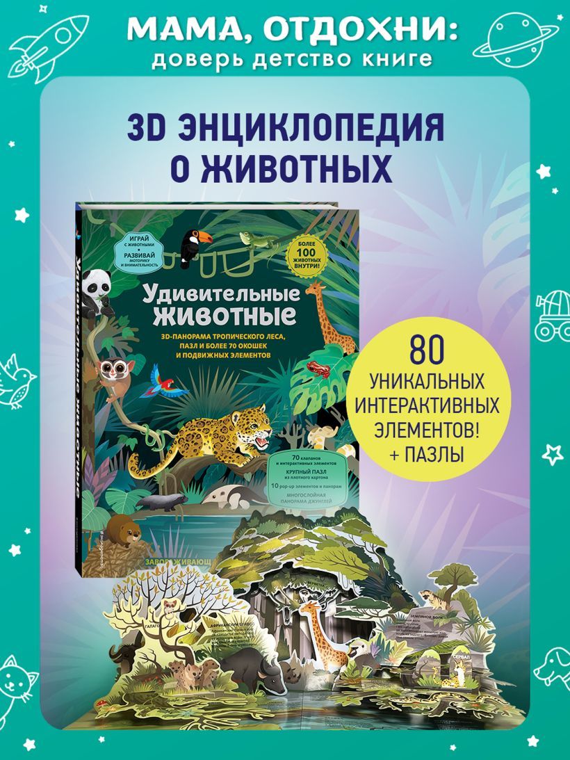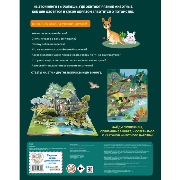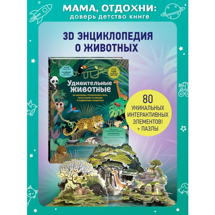 Удивительные животные (3D-панорама, пазл, более 70 окошек и подвижных элементов, 100+ животных внутр