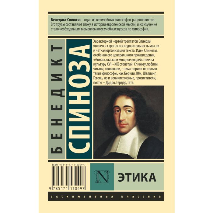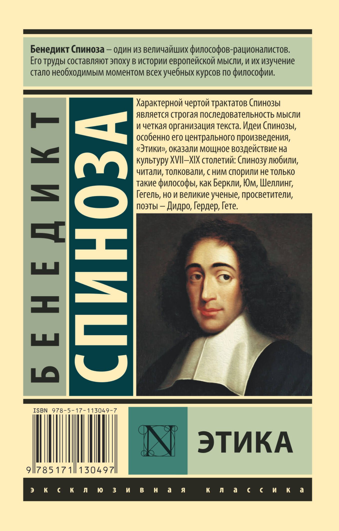 Характерной чертой трактатов Спинозы является строгая последовательность мысли и четкая организация текста. Идеи Спинозы, особенно его центрального произведения, "Этики", оказали мощное воздействие на культуру XVII—XIX столетий: Спинозу любили, читали, толковали, с ним спорили не только такие философы, как Беркли, Юм, Шеллинг, Гегель, но и великие ученые, просветители, поэты — Дидро, Гердер, Гете.