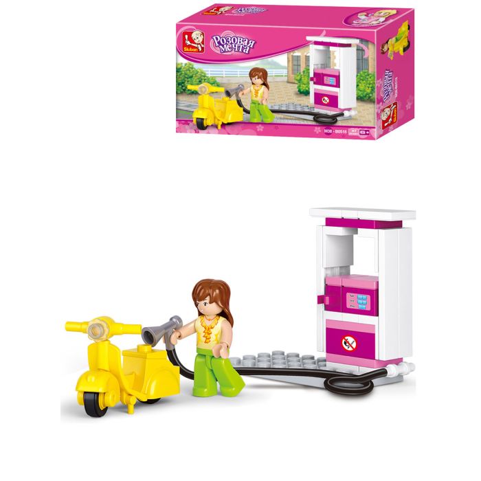 Конструктор Пластиковый Sluban Розовая Мечта. Автозаправочная Станция 37 Деталей