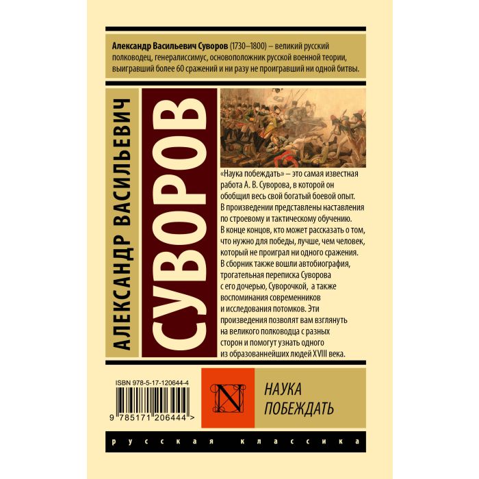 "Наука побеждать" — это самая известная работа А. В. Суворова, в которой он обобщил весь свой богатый боевой опыт. В произведении представлены наставления по строевому и тактическому обучению. В конце концов, кто может рассказать о том, что нужно для победы, лучше, чем человек, который не проиграл ни одного сражения. В сборник также вошли автобиография, трогательная переписка Суворова с его дочерью, Cуворочкой, а также воспоминания современников и исследования потомков. Эти произведения позволят вам взглянуть на великого полководца с разных сторон и помогут узнать одного из образованнейших людей XVIII века.