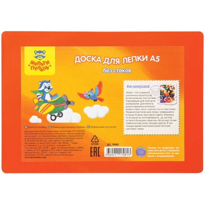 Доска для лепки Мульти-Пульти, А5, пластик, оранжевый