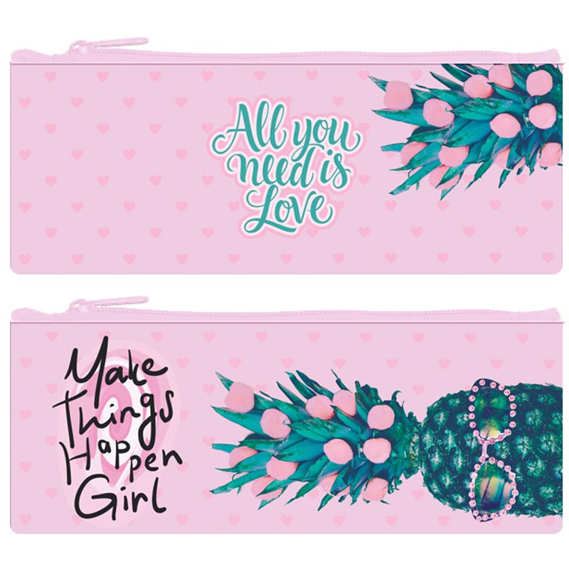 Пенал мягкий плоский BG 195х70 мм на молнии "Модный ананас" полиэстер