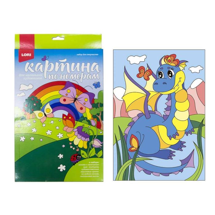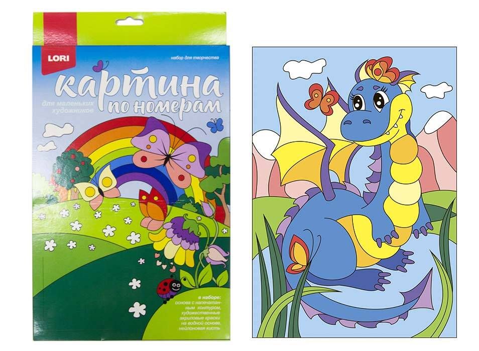 Картина по номерам Lori "Озорной дракончик" A4, с акриловыми красками, картон, европодвес