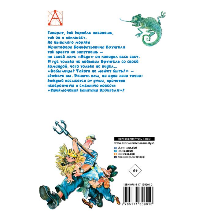 Знаменитая повесть "Приключения капитана Врунгеля" была написана в 1937 году известным писателем Андреем Сергеевичем Некрасовым (1907 - 1987). Отправившись в кругосветное путешествие на яхте "Беда", горе-мореплаватель Христофор Бонифатьевич Врунгель и его верные спутники, старший помощник Лома и матрос Фукс, без конца попадают в уморительные и фантастические ситуации. Смех сопровождает чтение повести "Приключения капитана Врунгеля" от первой и до последней страницы, поэтому книгу эту так любят и маленькие, и большие. Иллюстрации Валерия Дмитрюка. Для среднего школьного возраста.