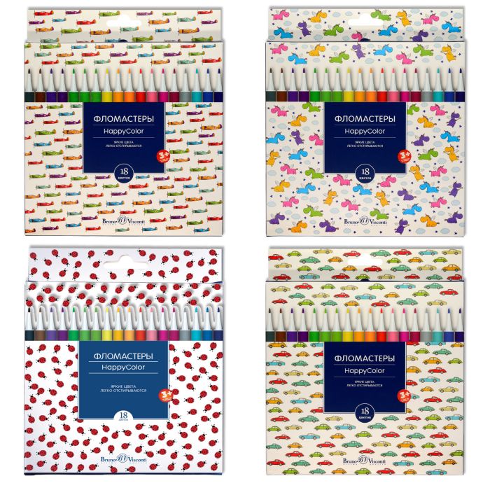Фломастеры "Happycolor" 18 Цв. 4 Вида