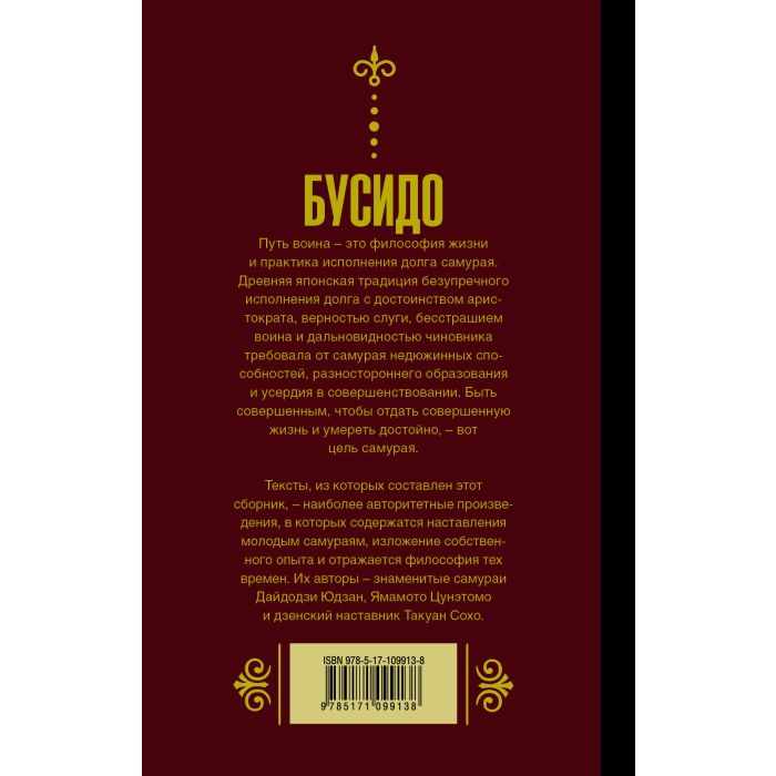 Бусидо – Путь воина – это философия жизни и практика исполнения долга самурая. Древняя японская традиция безупречного исполнения долга с достоинством аристократа, верностью слуги, бесстрашием воина и дальновидностью чиновника требовала от самурая недюжинных способностей, разностороннего образования и усердия в совершенствовании. Быть совершенным, чтобы отдать совершенную жизнь и умереть достойно – вот цель самурая.