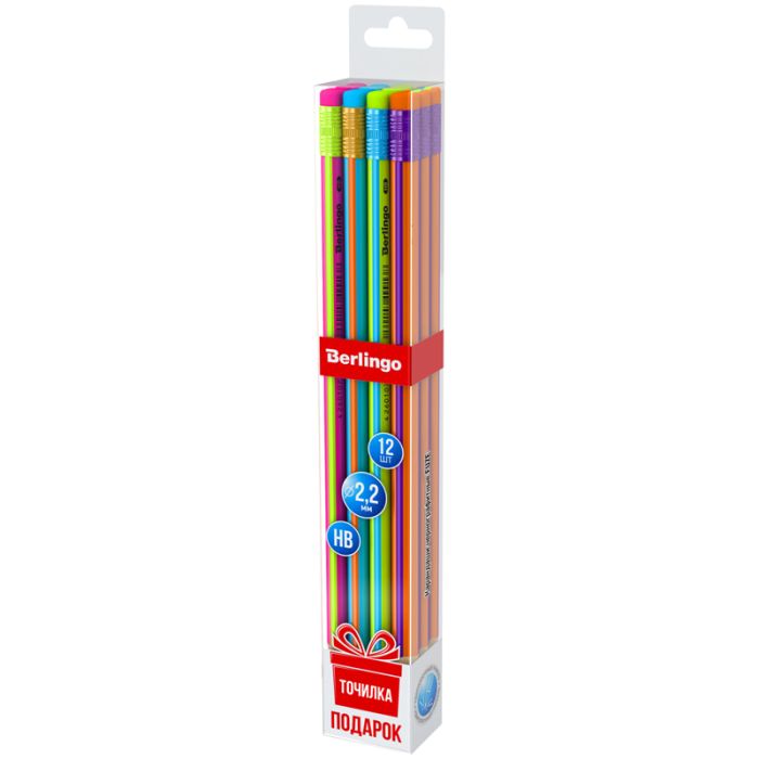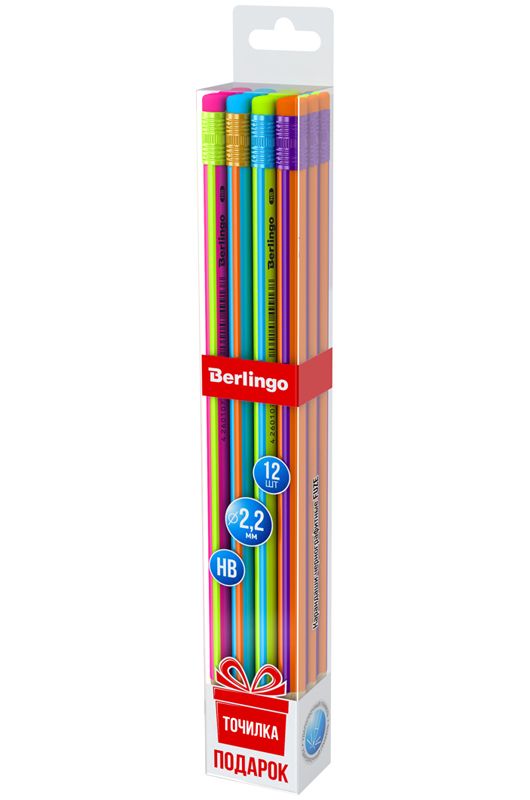 Набор карандашей ч/г Berlingo "Fuze" HB, 12шт, трехгран. заточен. с ластиком, точилка, пластикова