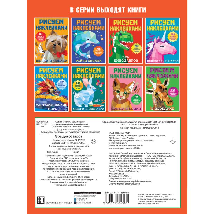 "Такие разные динозавры" — самая настоящая волшебная книжка для юных художников. Это красочные иллюстрации + более 250 геометрических стикеров. Ребята узнают, что рисовать можно не только карандашами, фломастерами или красками, но и наклейками. Получаются картинки с 3D-эффектом! Достаточно подобрать наклейки по номерам. Ребёнок удивится и обрадуется, когда животные Древнего мира станут красочными и объёмными. Юным художникам обязательно понравятся интересные задания на развитие логики, памяти, внимания, мелкой моторики. Для дошкольного и младшего школьного возраста.