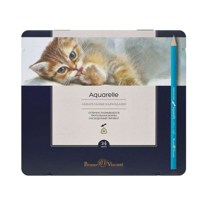 Карандаши Акварельные "Aquarelle", 24 Цв. В Металлической Коробке С Ложементом