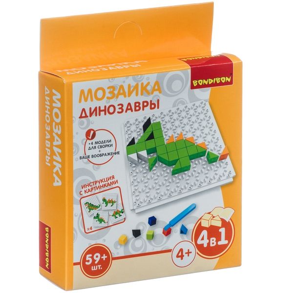 Логическая, развивающая игра Bondibon Мозаика «ДИНОЗАВРЫ», 59 дет.