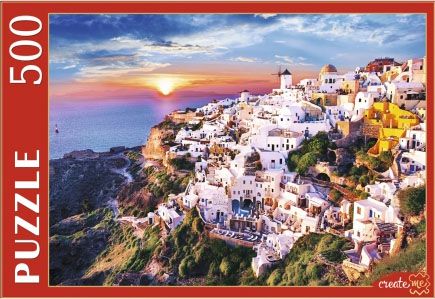 Puzzle Рыжий кот-500 Греция.Санторини на закате