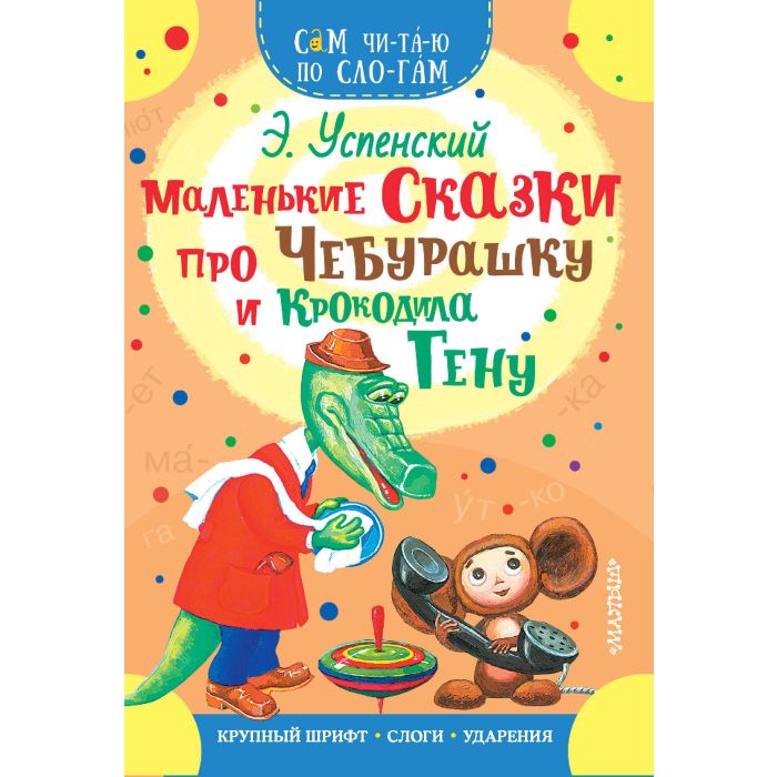 Ваш малыш уже знает буквы, и его ручки тянутся к книжкам? Дайте ему книжку из серии "Сам читаю по слогам". Эти книжки небольшого формата, с большими буквами, и все слова разбиты на слоги с ударениями. В этой серии собраны лучшие произведения классиков детской литературы — С. Маршака, С. Михалкова, Э. Успенского, Г. Остера, В. Сутеева и других знаменитых писателей и поэтов. Каждую книжку маленькие мальчики и девочки смогут прочитать САМИ от начала и до конца, а потом будут гордо говорить: "Вот мои первые прочитанные книжки. Хочу читать ещё!" В этой книжке малышей ждут истории Э. Успенского про неразлучных друзей — Чебурашку и крокодила Гену. Для дошкольного возраста.