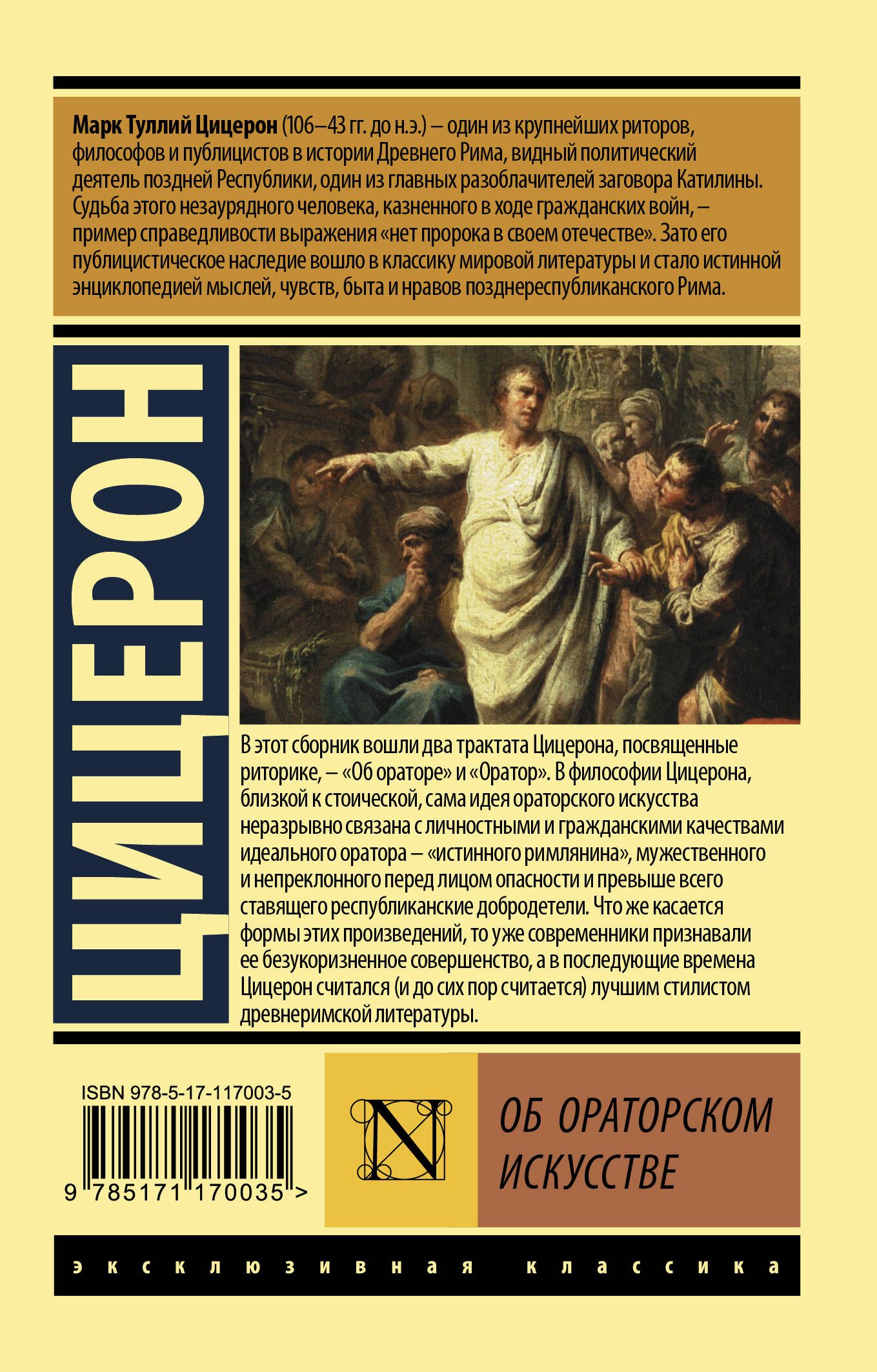 В этот сборник вошли два трактата Цицерона, посвященные риторике, – "Об ораторе" и "Оратор". В философии Цицерона, близкой к стоической, сама идея ораторского искусства неразрывно связана с личностными и гражданскими качествами идеального оратора – "истинного римлянина", мужественного, непреклонного перед лицом опасности и превыше всего ставящего республиканские добродетели. Что же касается формы этих произведений, то уже современники признавали ее безукоризненное совершенство, а в последующие времена Цицерон считался (и до сих пор считается) лучшим стилистом древнеримской литературы.