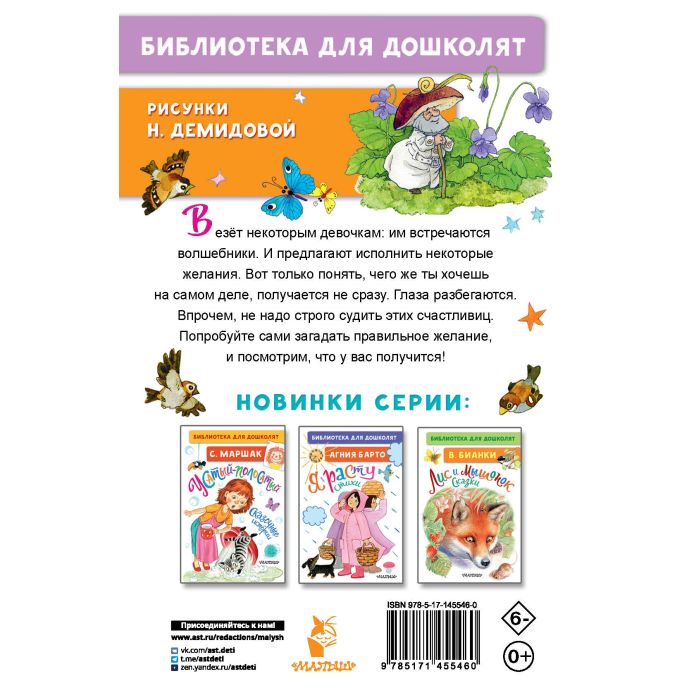в подарок семь желаний! И очень глупо их растратила. И только последнее желание оказалось добрым и полезным. Очень мудрая история, пригодится не только детям, но и взрослым. Рисунки Натальи Демидовой.
