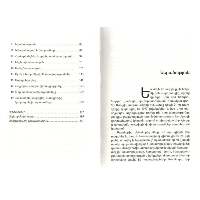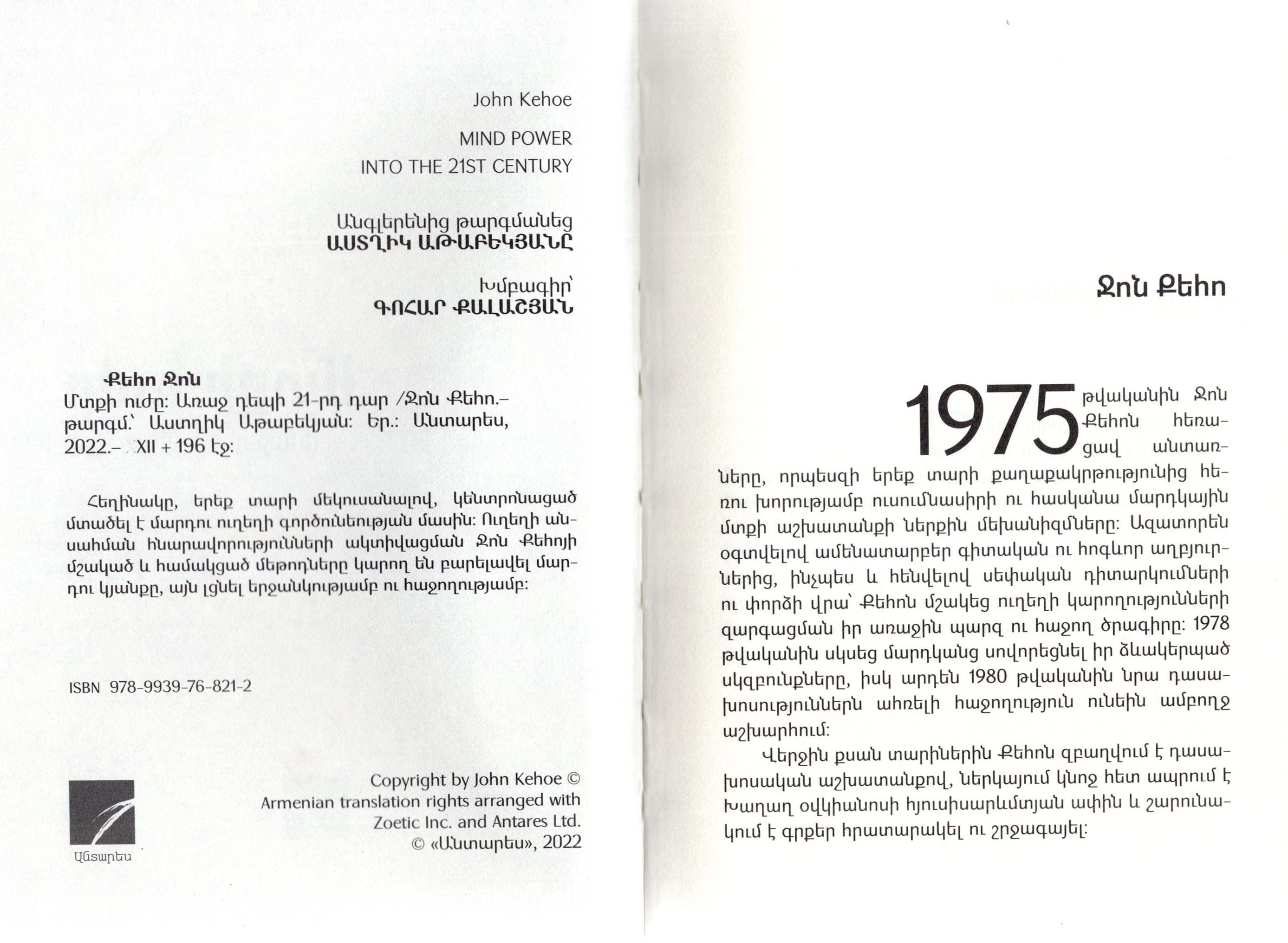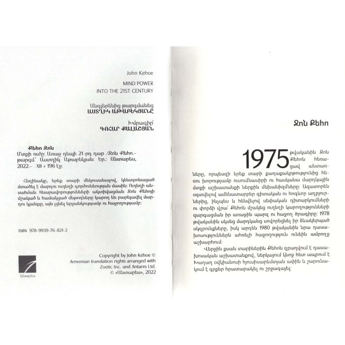 «Մտքի ուժը. Առաջ դեպի 21-րդ դար». Հեղինակը, երեք տարի մեկուսանալով, կենտրոնացած մտածել է մարդու ուղեղի գործունեության մասին: Ուղեղի անսահման հնարավորությունների ակտիվացման Ջոն Քեոյի մշակած և համակցած մեթոդները կարող են բարելավել մարդու կյանքը, այն լցնել երջանկությամբ ու հաջողությամբ: