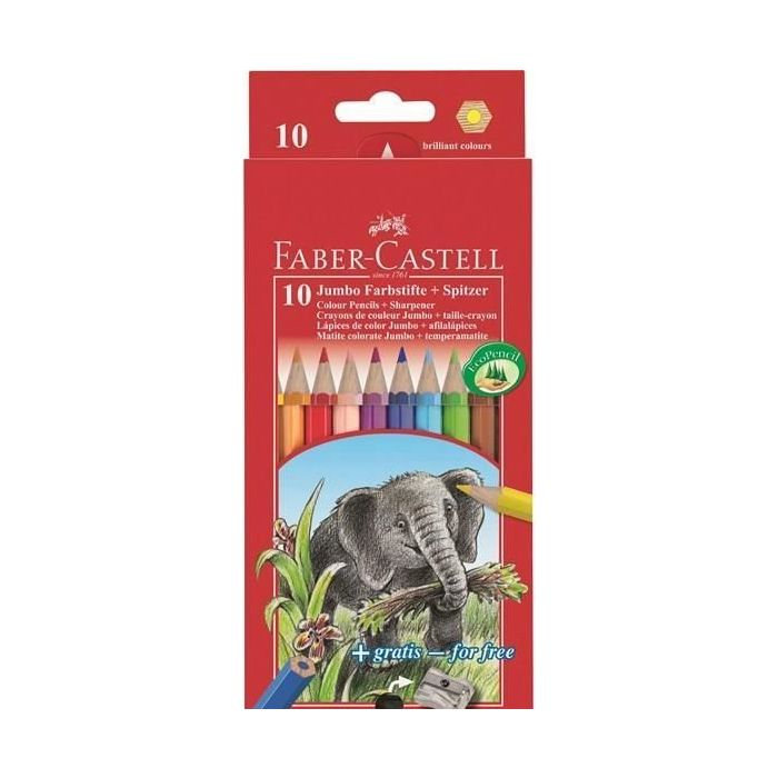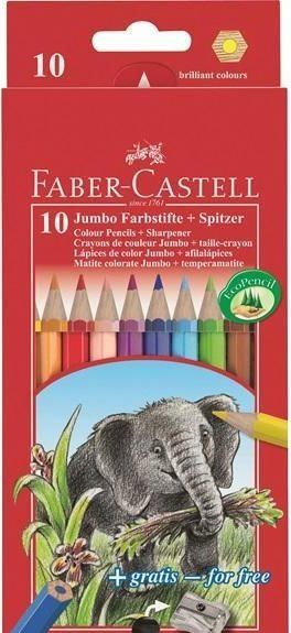 Карандаши цветные Faber-Castell "Jumbo", 10цв. утолщен. заточен. картон, европодвес, с точилкой