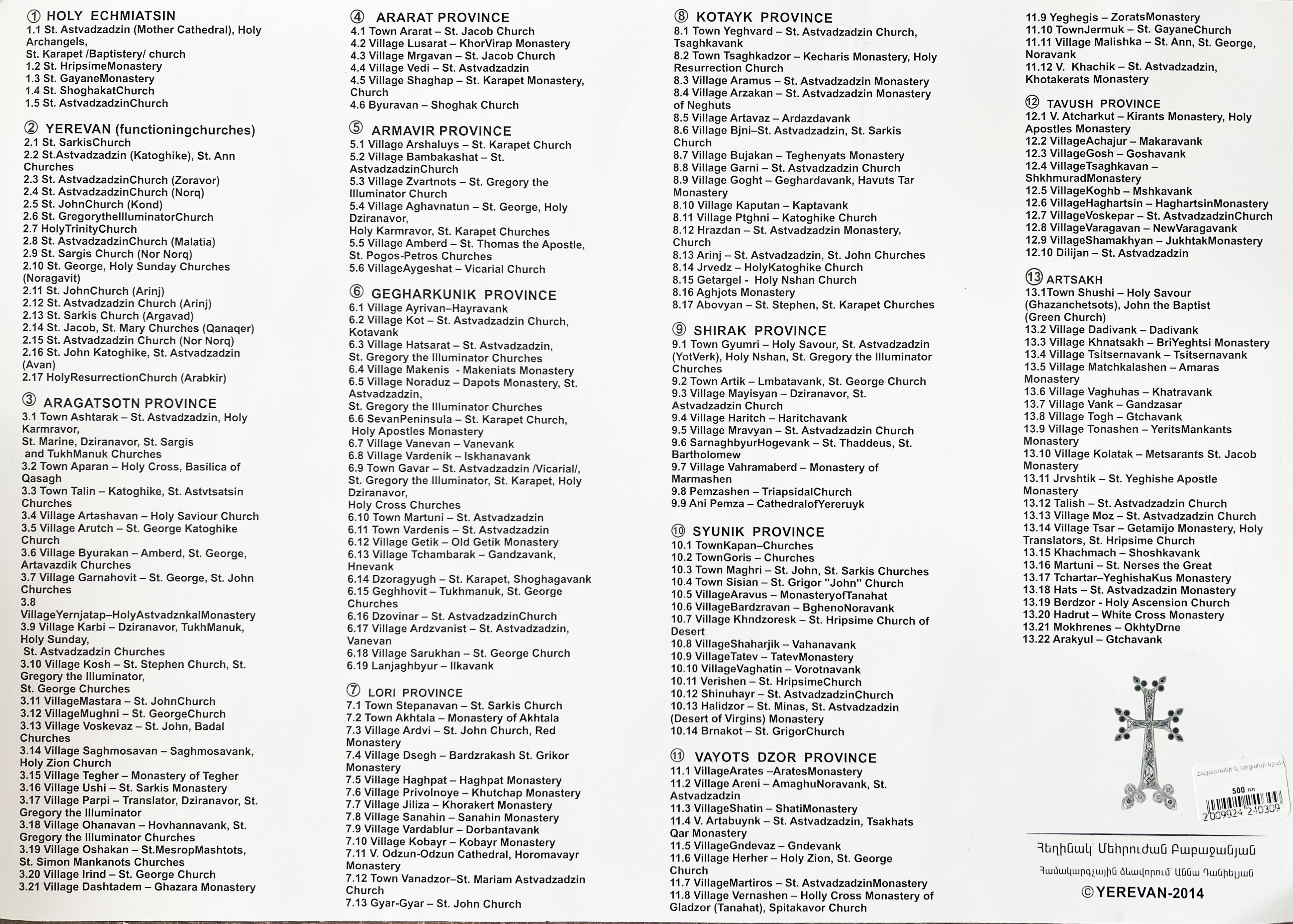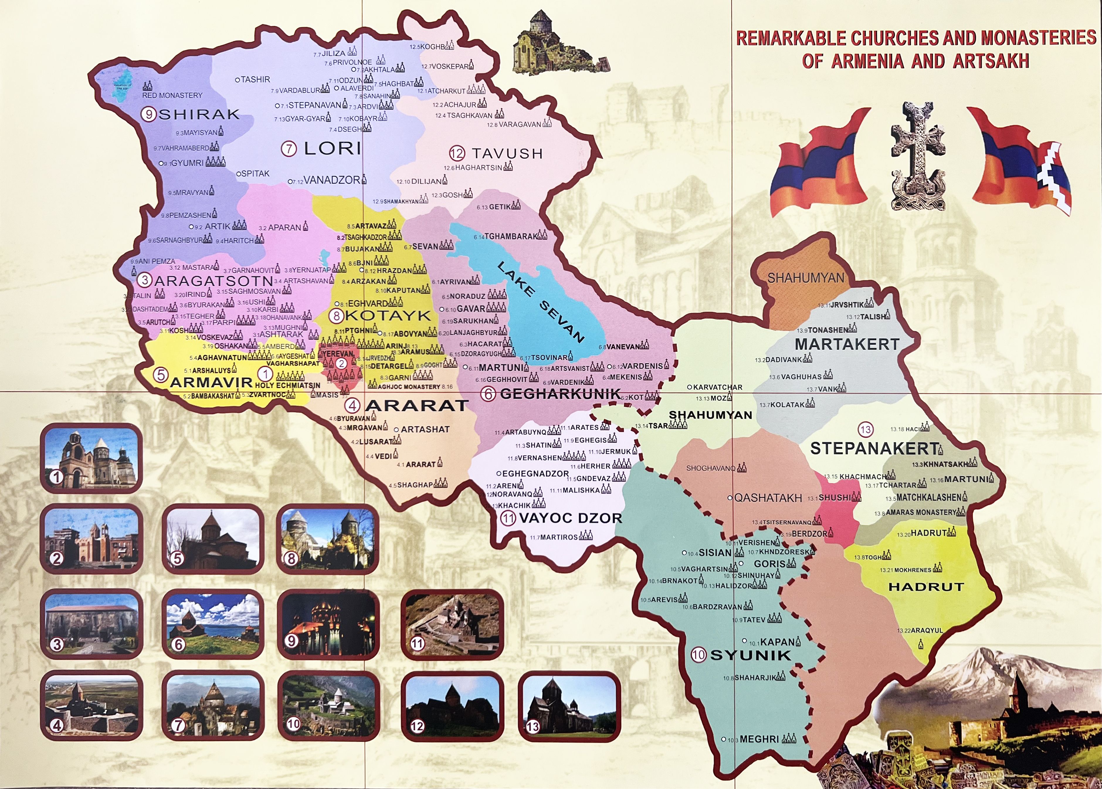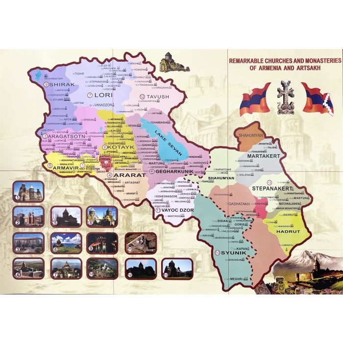 Հայաստանի և Արցախի նշանավոր եկեղեցիներն ու վանքերը(քարտեզ,անգլերեն)