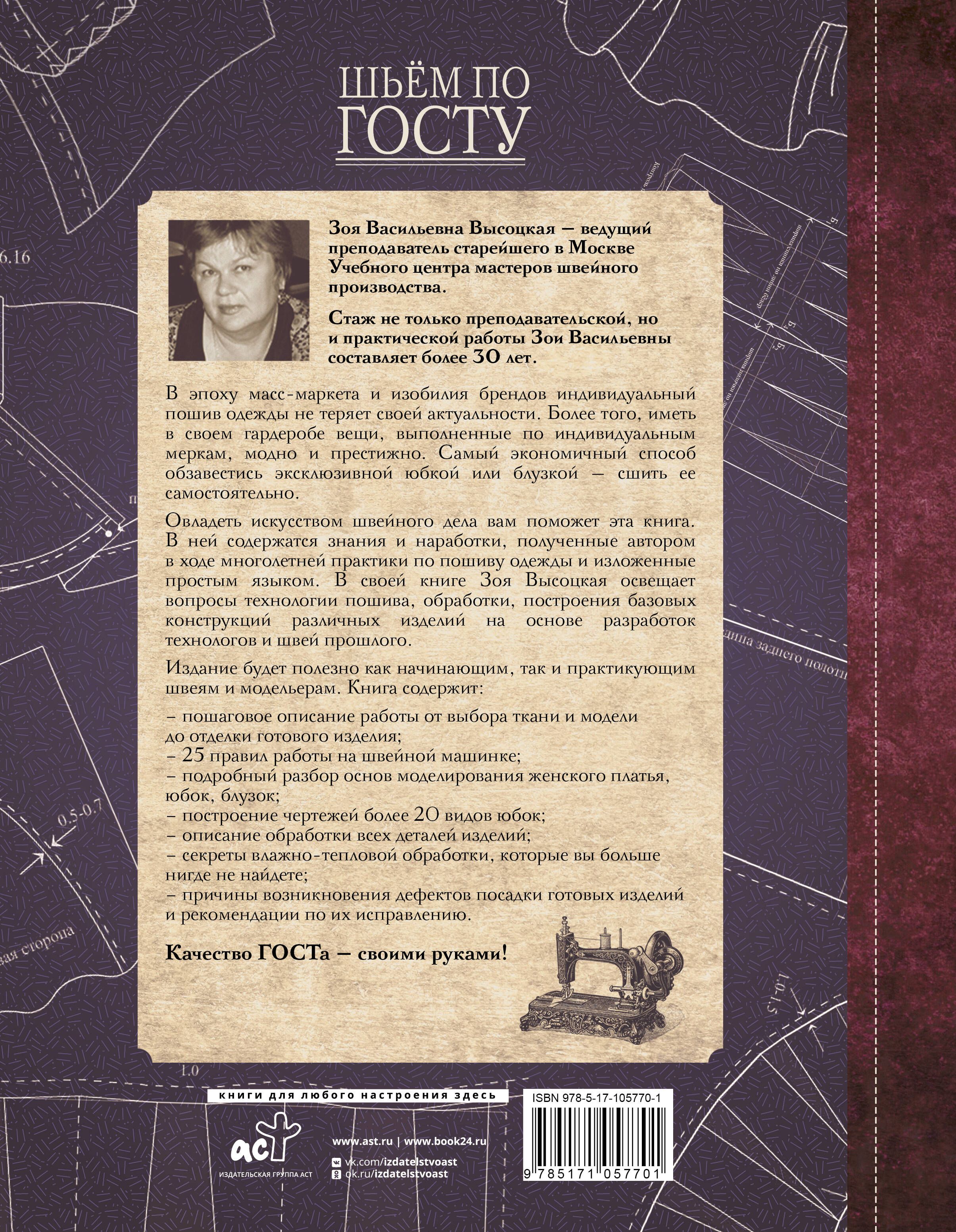 Овладеть искусством швейного дела вам поможет эта книга. В ней содержатся знания и наработки, полученные автором в ходе многолетней практики по пошиву одежды и изложенные простым языком. В своей книге Зоя Высоцкая освещает вопросы технологии пошива, обработки, построения базовых конструкций различных изделий на основе разработок технологов и швей прошлого.