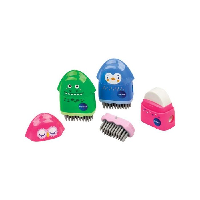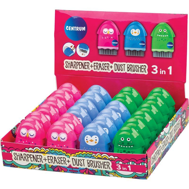 Точилка Centrum пластиковая, 1 отверствие, контейнер, с ластиком и щеточкой, ассорти