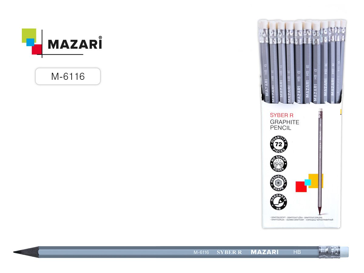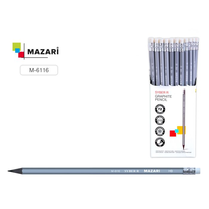 Карандаш чернографитный Syber R, HB, серебряный корпус пластиковый с ластиком