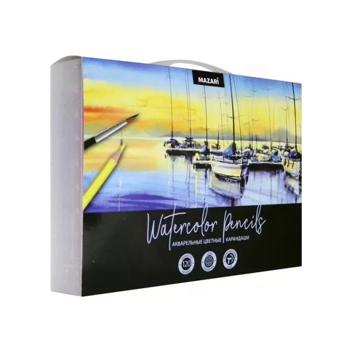 Карандаши цветные, акварельные 120цв. с кисточкой