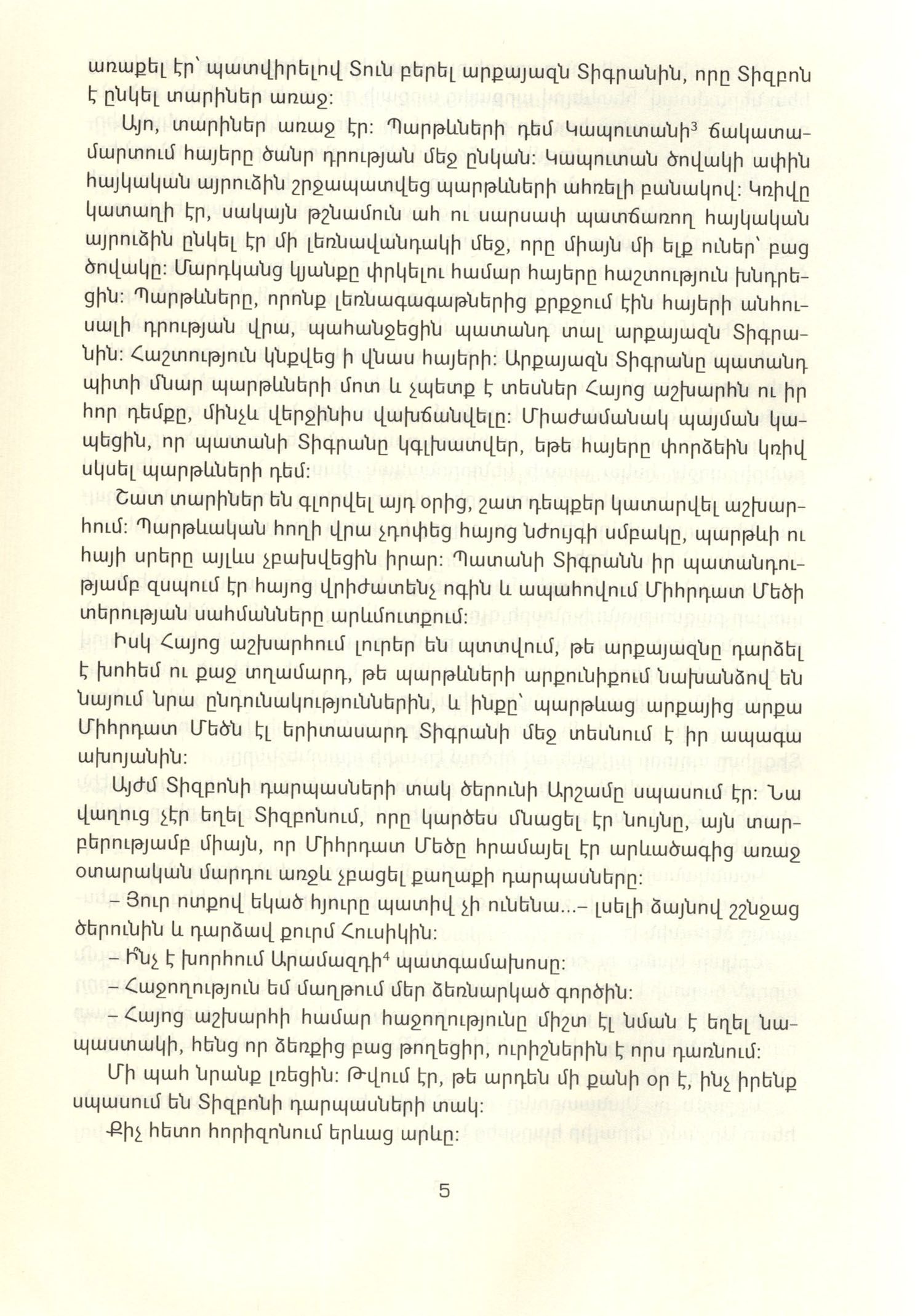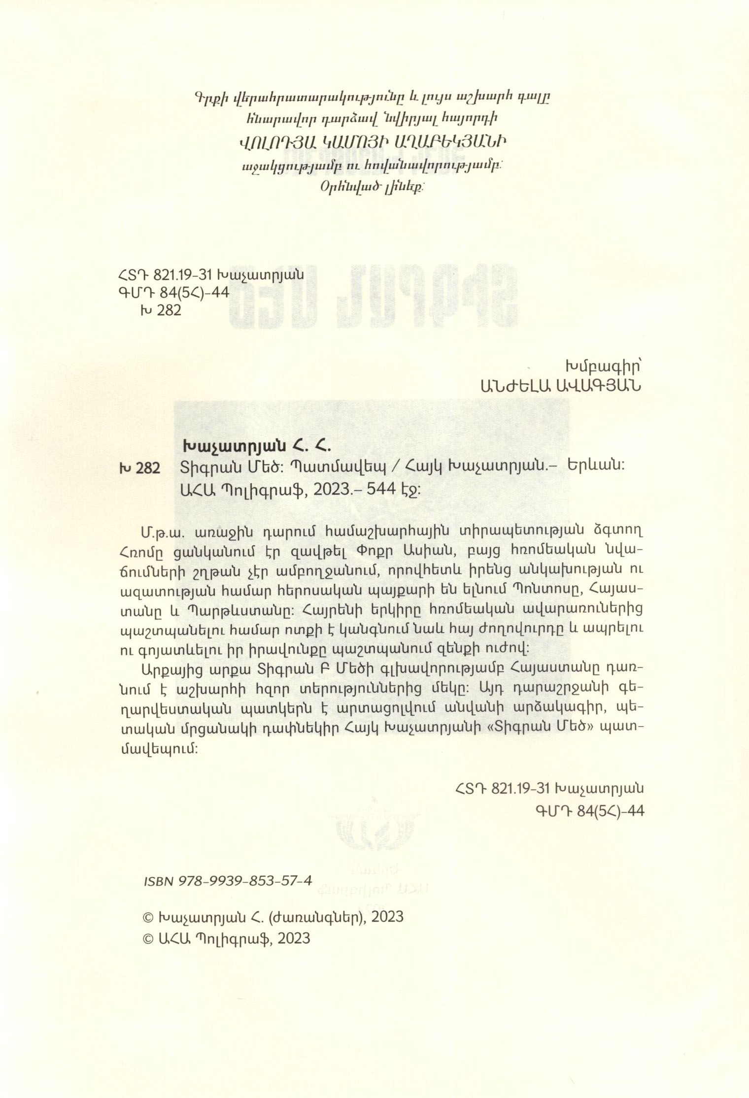 Արքայից արքա Տիգրան Բ Մեծի գլխավորությամբ Հայաստանը դառնում է աշխարհի հզոր տերություններից մեկը: Այդ դարաշրջանի գեղարվեստական պատկերն է  արտացոլվում անվանի արձակագիր, պետական մրցանակի դափներկիր Հայկ Խաչատրյանի ˂˂Տիգրան Մեծ>> պատմավեպում: