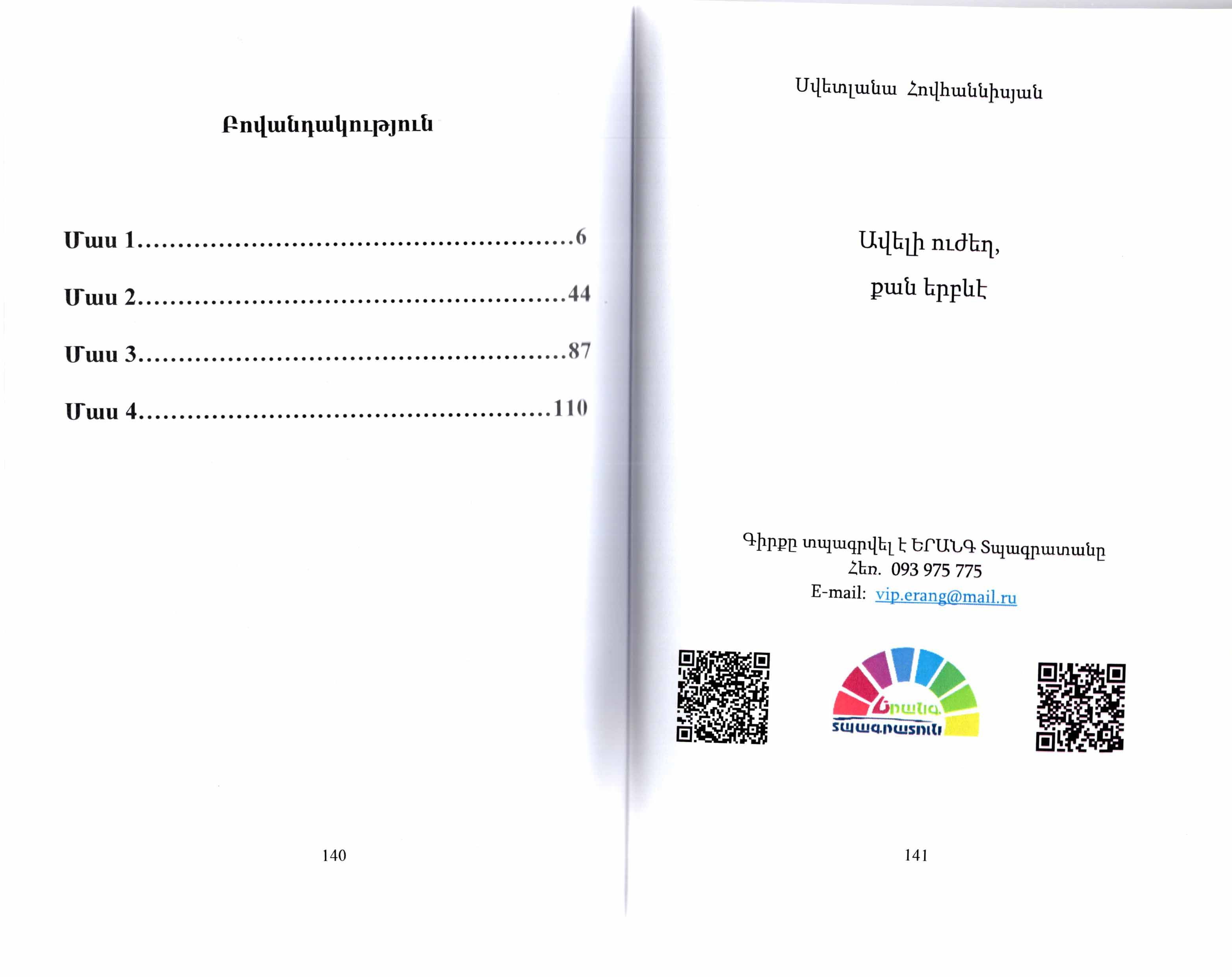 Գիրքը տալիս է թույլ մարդուց ուժեղ դառնալու բանաձև: Այն պայքարի, պարտությունից հետո չհանձնվելու և նոր պայքար սկսելու, ինքնաճանաչման, սեփական ուժերին հավատալու, երազանքներ կերտելու և դրանց հետևից գնալու, սիրելու և սիրո միջոցով հաղթելու մասին պատմող պատմություն է: Այն պատմություն է, որի մեջ հաստատ ձեզանից յուրաքանչյուրը կգտնի իրենից գոնե մի մասնիկ: