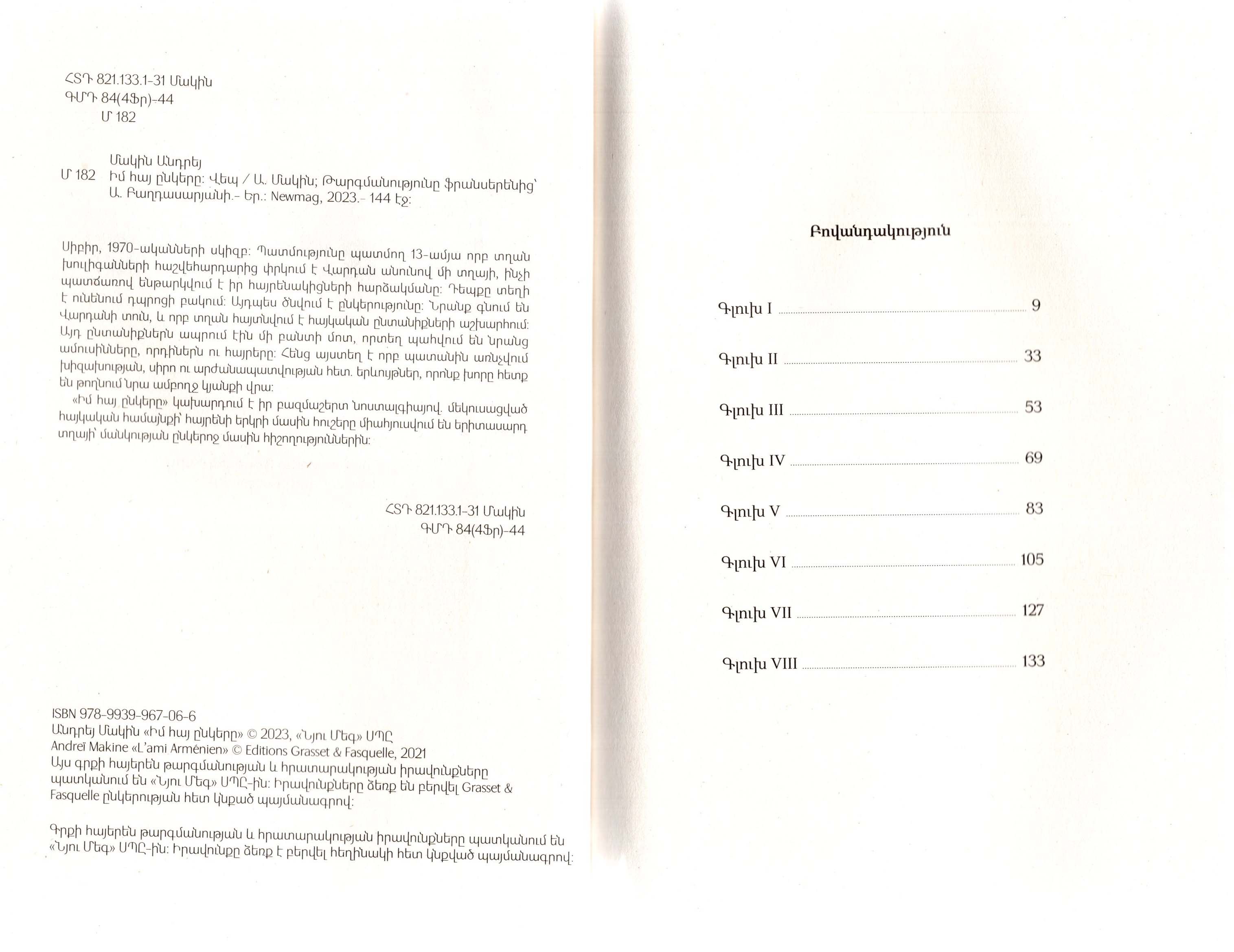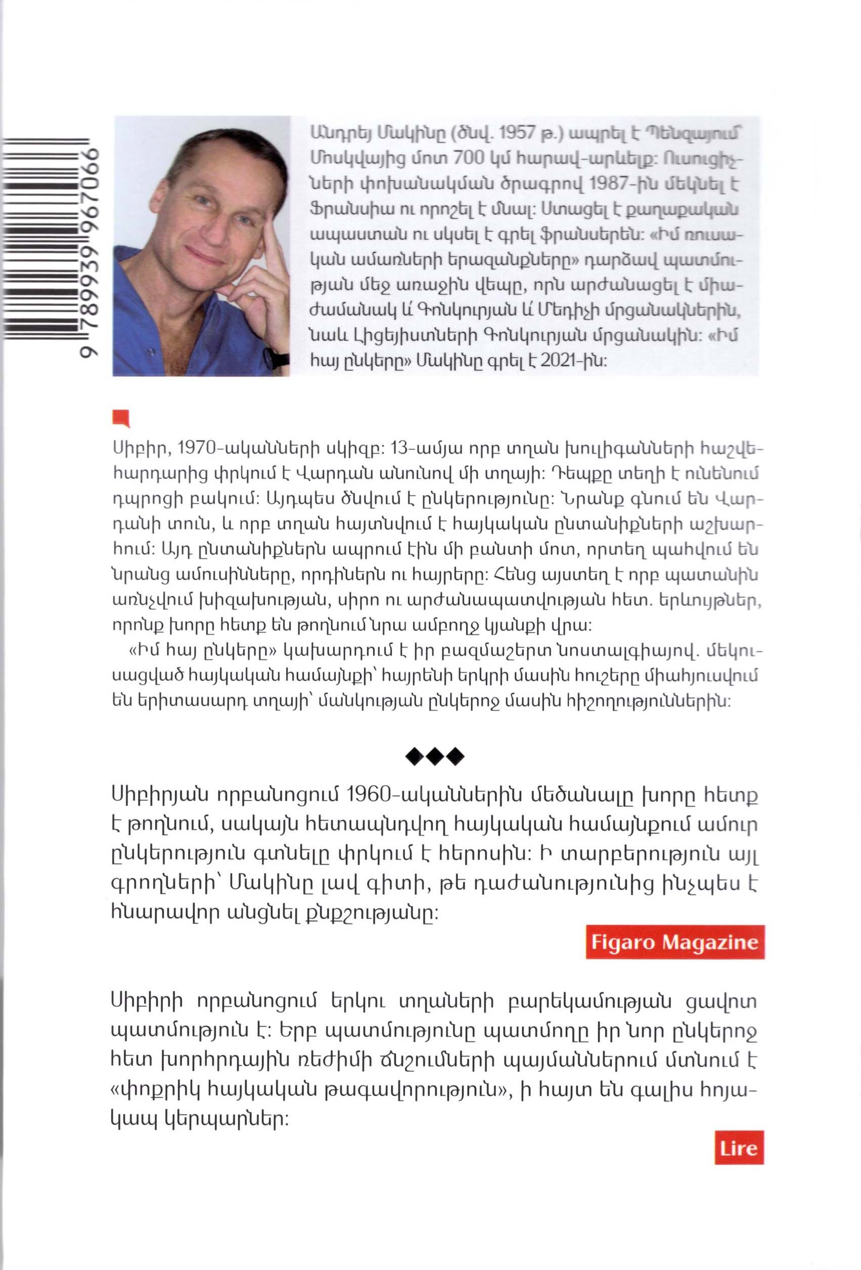 Պատմությունը պատմող 13-ամյա որբ տղան խուլիգանների հաշվեհարդարից փրկում է Վարդան անունով մի տղայի, ինչի պատճառով ենթարկվում է իր հայրենակիցների հարձակմանը: Դեպքը տեղի է ունենում դպրոցի բակում: Այդպես ծնվում է ընկերությունը: Նրանք գնում են Վարդանի տուն, եւ որբ տղան հայտնվում է հայկական ընտանիքների աշխարհում: Այդ ընտանիքներն ապրում էին մի բանտի մոտ, որտեղ պահվում են նրանց ամուսինները, որդիներն ու հայրերը: Հենց այստեղ է որբ պատանին առնչվում խիզախության, սիրո, արժանապատվության հետ. երեւույթներ, որոնք խորը հետք են թողնում նրա ամբողջ կյանքի վրա: «Իմ հայ ընկերը» կախարդում է իր բազմաշերտ նոստալգիայով. մեկուսացված հայկական համայնքի՝ հայրենի երկրի մասին հուշերը միահյուսվում են երիտասարդ տղայի՝ մանկության ընկերոջ մասին հիշողություններին: