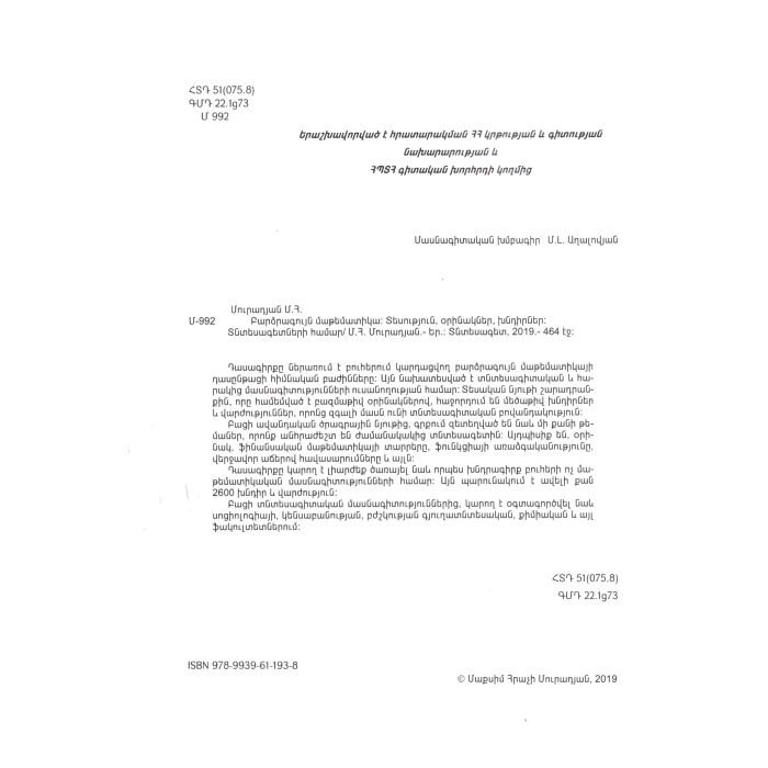 Բարձրագույն Մաթեմատիկա տնտեսագետների համար / կոշտ
