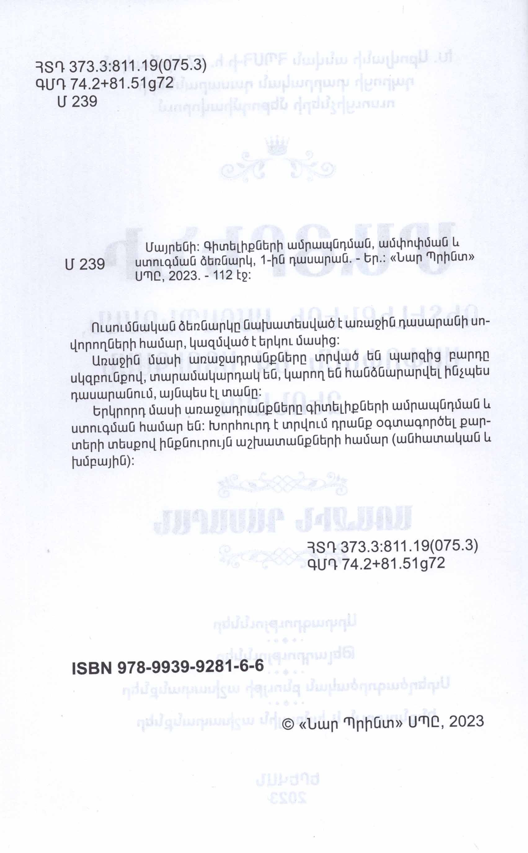 Մայրենի։ Գիտելիքների ամրապնդման, ամփոփման և ստուգման ձեռնարկ, 1-ին դասարան