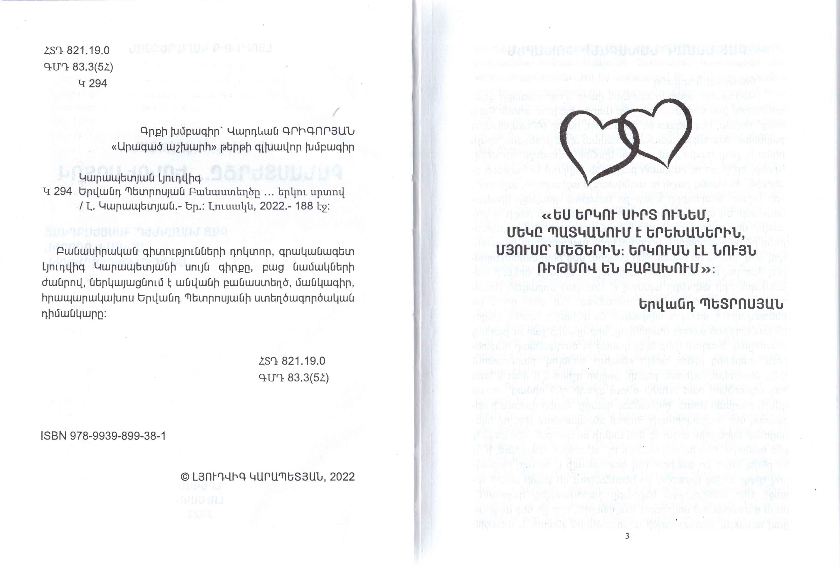 Երվանդ Պետրոսյան բանաստեղծը․․․ երկու սրտով