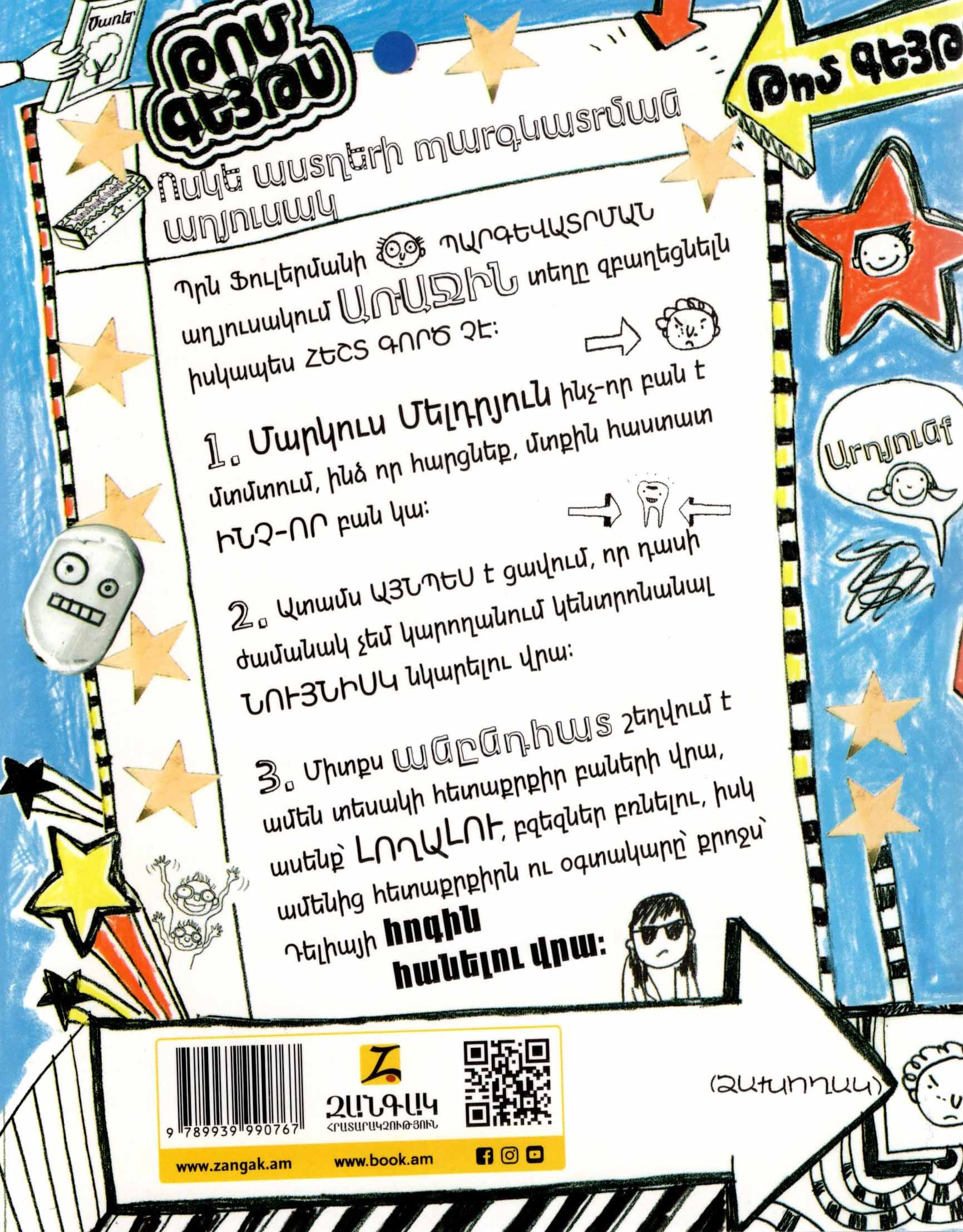 Թոմ Գեյթսն ապրում է սքանչելի կյանքով ոչ պակաս սքանչելի իր աշխարհում: Նա այնքան էլ օրինակելի կերպար չէ, բայց վստահաբար ստիպելու է մանուկ ընթերցողին ագահորեն թերթել այս զվարթ հատորյակի էջերն ու սրտի ուզածի չափ ծիծաղել: