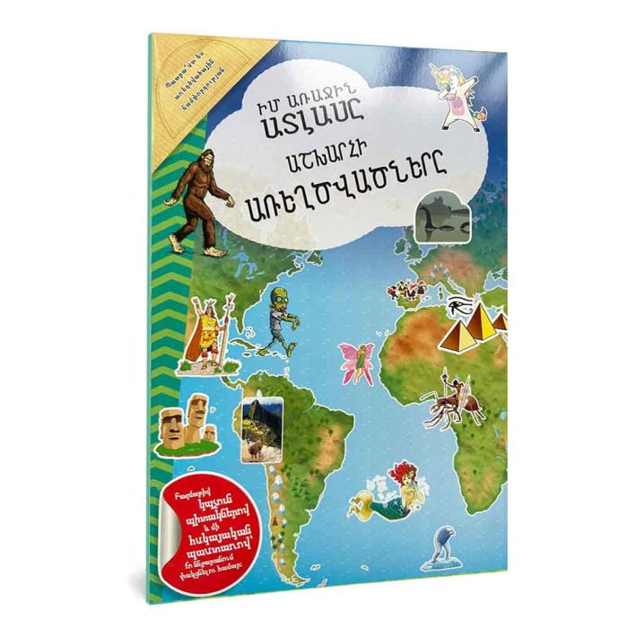 Բացահայտի՛ր մեր մոլորակի հարուստ և բազմազան մշակութային ժառանգությունը այս ատլասում, որը լի է հետաքրքրաշարժ կերպարներով, սարսափելի պատմություններով, պատկերազարդ քարտեզներով և հիանալի նկարազարդումներով ու լուսանկարներով: Վայելի՛ր հսկայական պաստառը և գրքի էջերը տասնյակ կպչուն պիտակներով զարդարելու գործընթացը: Այս ատլասով զինված՝ ճամփա՛ ընկիր՝ բացահայտելու աշխարհի սիրված և քիչ հայտնի առասպելներից, ավանդույթներից և առեղծվածներից մի քանիսը... Բայց դրանցից ո՞րն է իրականություն և ո՞րը հորինվածք: