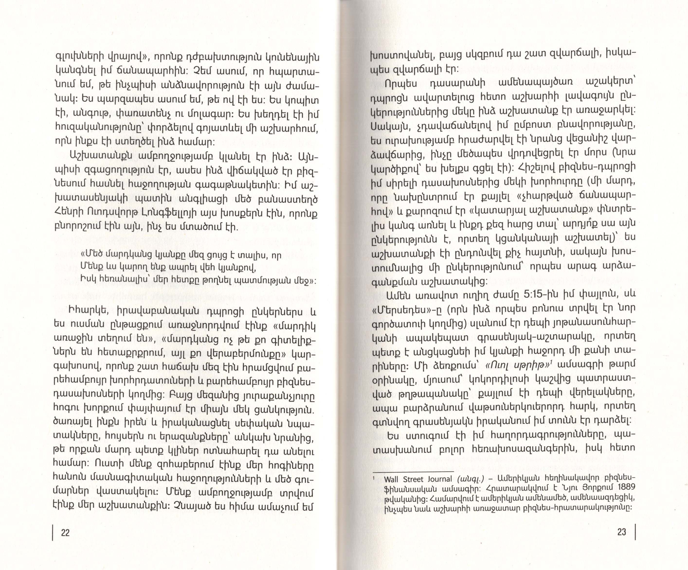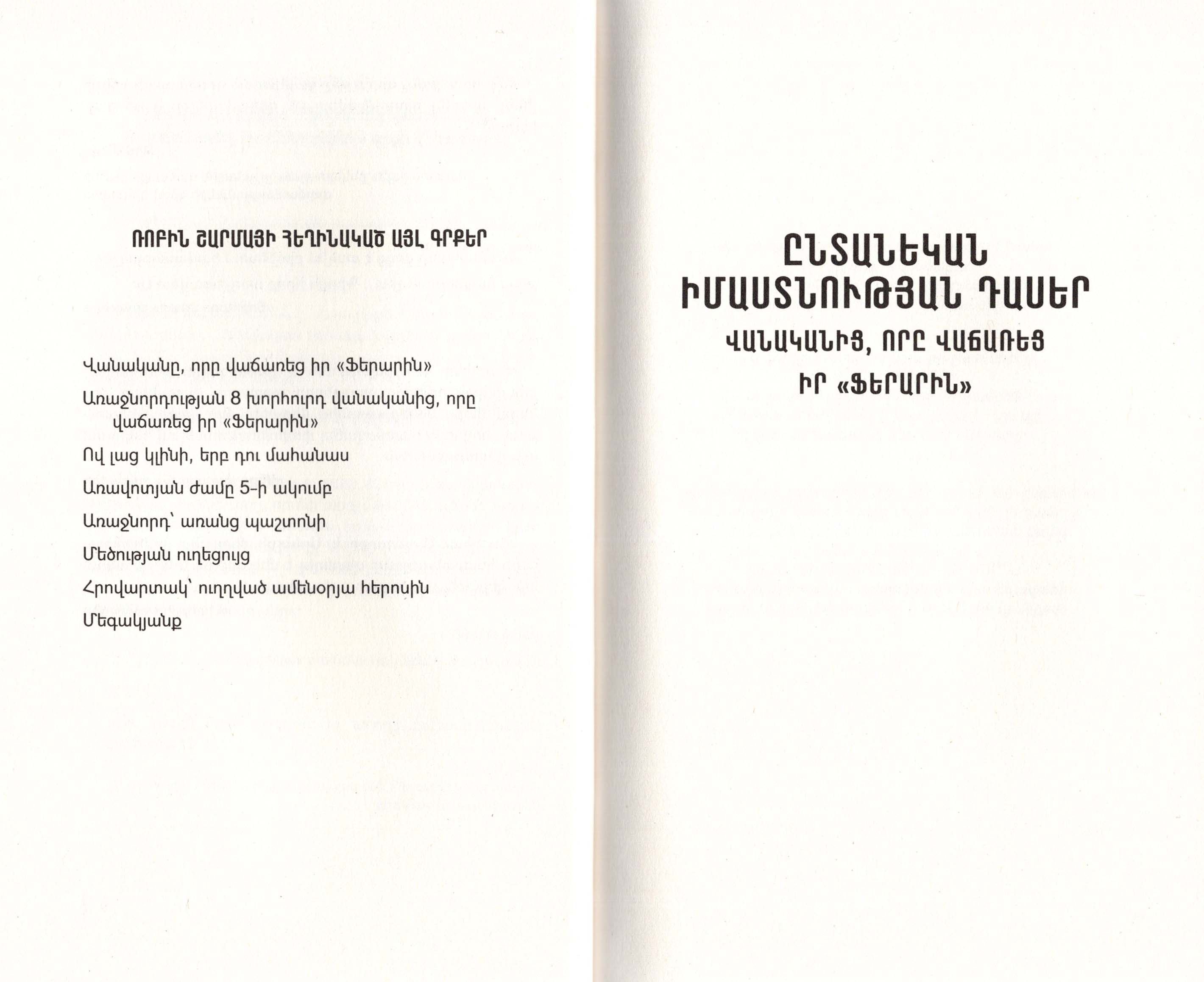 Ռոբին Շարման համաշխարհային ճանաչում ունեցող արհեստավարժ բանախոս է: Առաջնորդության, անձնական աճի արդյունավետության վերաբերյալ նրա «Ընտանեկան առաջնորդության դասեր վանականից, որը վաճառեց իր «Ֆերարին»» գիրքը հերթական բեսթսելերն է, որն իր մեջ ամփոփող հզոր իմաստնության միջոցով կօգնի իրենց կյանքում լուրջ փոփոխություններ մտցնել ցանկացողներին: Գրքում զետեղված հինգ վարպետությունների միջոցով հեղինակը քայլ առ քայլ ընթերցողին տանում է դեպի անձնական, ապա նաև նրանից բխող ընտանեկան երջանկություն: Եվ որ ամենակարևորն է. ամեն ինչ պետք է անել սիրով: Հեղինակի խոսքերով ասած՝ «փոքր բաներն արա մեծ սիրով և ուշադրությամբ, այնժամ մեծ բաներն իրենք իրենց մասին կհոգան...»: