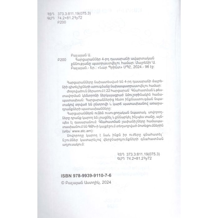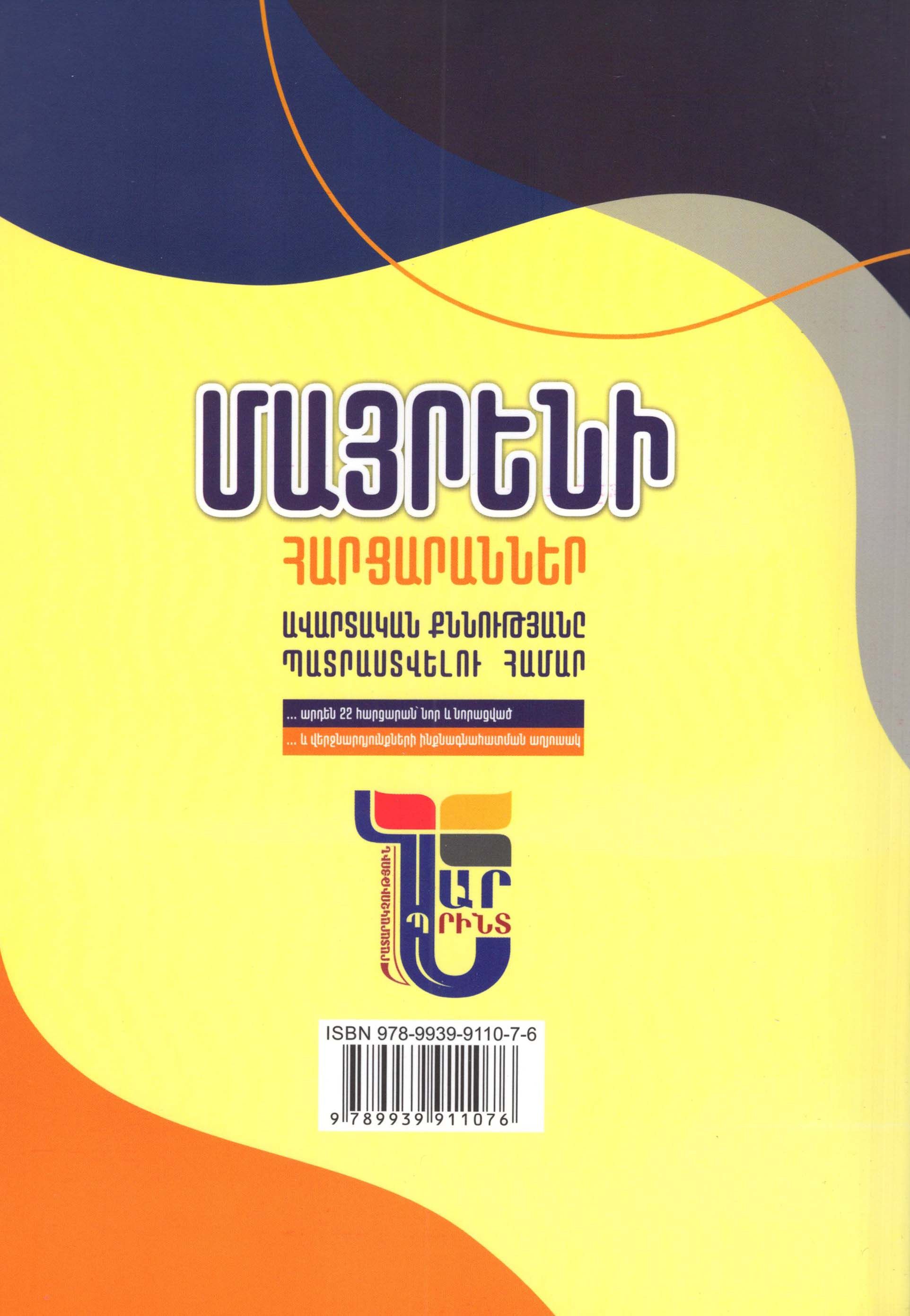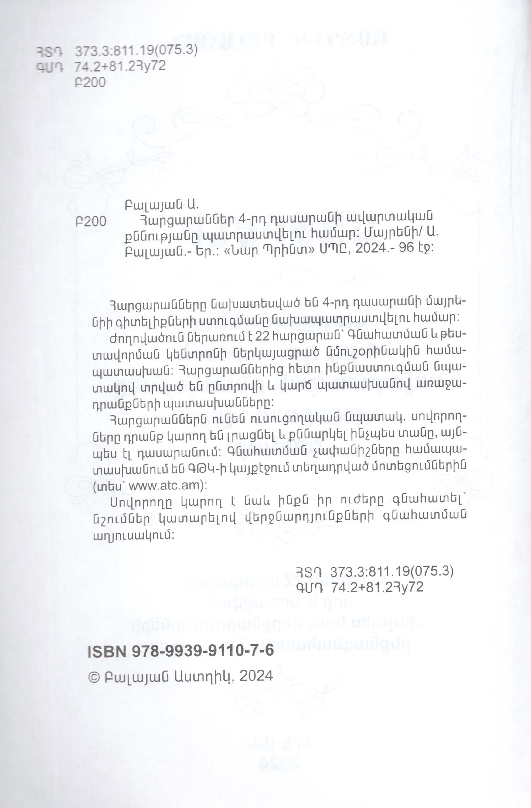 Մայրենի․ Հարցարաններ 4-րդ դասարանի ավարտական քննությանը պատրաստվելու համար