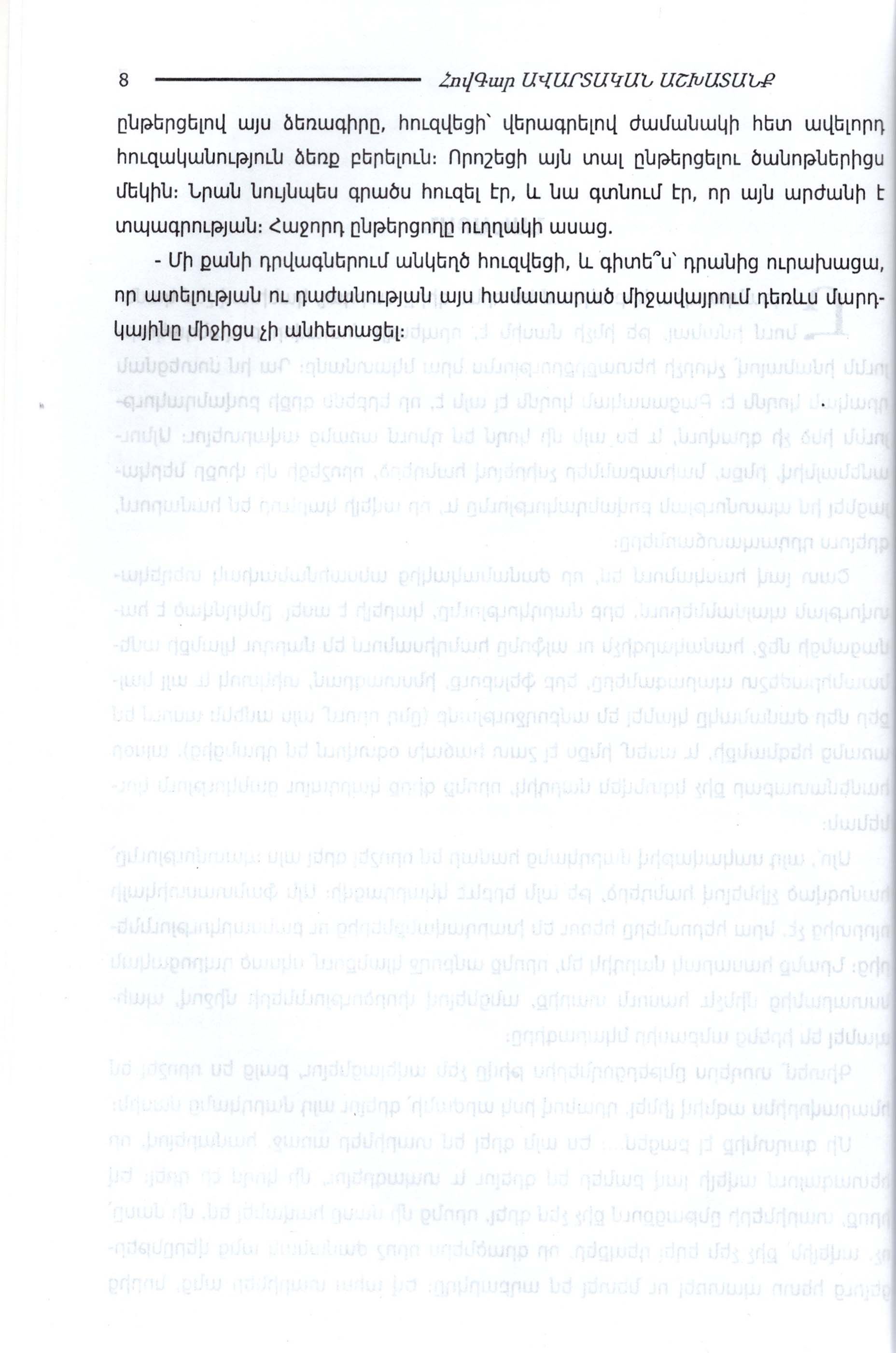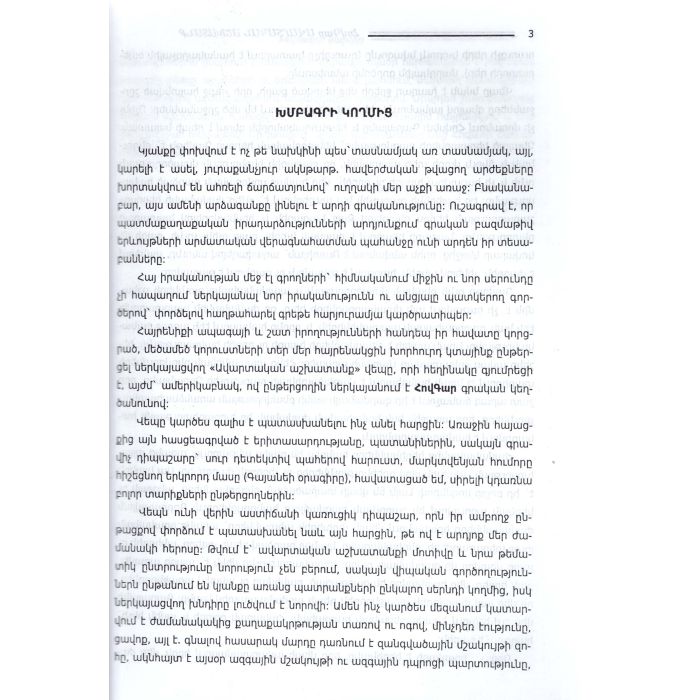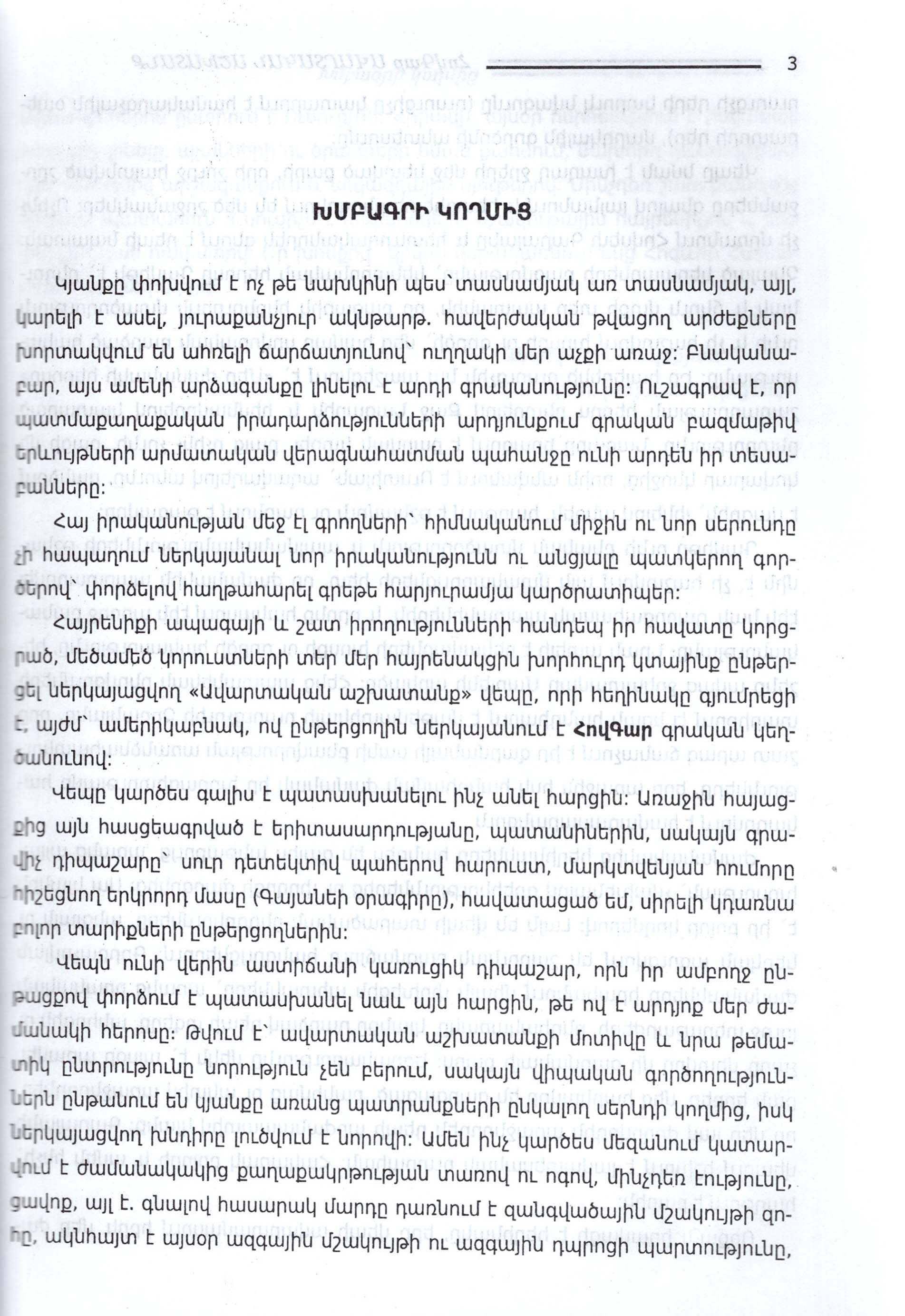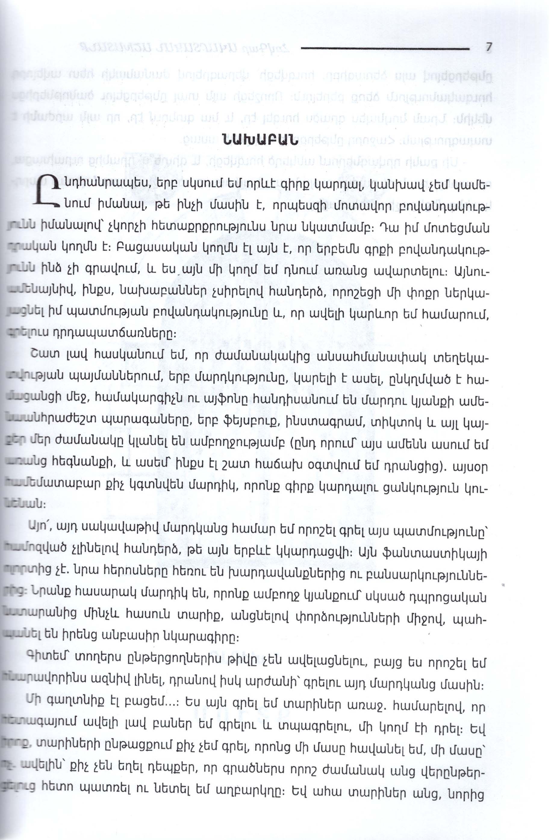 Վեպում մերօրյա պատանիների ու երիտասարդների կյանքն է, ընկերության, սիրո ու բարեկամության սրամիտ ու գեղեցիկ էջերը: Այս ամենը հեղինակը զուգորդում է հրաշալի դետեկտիվ մոտիվների հետ՝ երբեք բաց չթողնելով սյուժետային հիմնական գծերը: Չենք կասկածում այն վայելքի մասին, որ ստանալու է ընթերցողը՝ հետևելով ներկայացվող գրքի էջերին: Գիրքը հասցեագրված է ավագ դպրոցական և բարձր տարիքի ընթերցողներին: